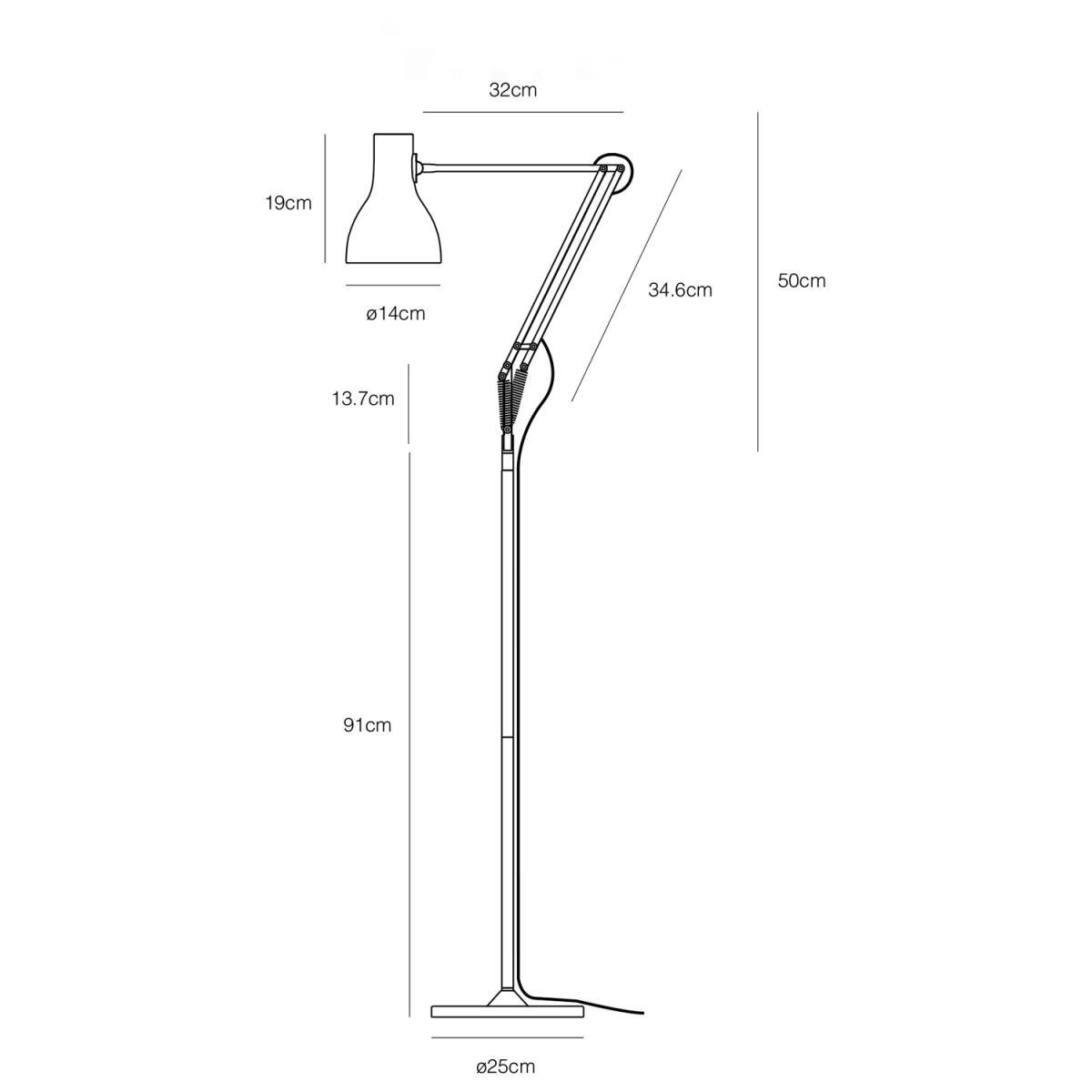 The Anglepoise Type 75 floor lamp makes the perfect reading light. It combines all the high quality fittings and features you have come to expect from an Anglepoise® with elegant, classic looks, flowing movement and full adjustability. Extend your guarantee Anglepoise offer a lifetime guarantee for this product when registered within 90 days of purchase. Please to register. Worth Knowing You will receive a desk lamp with a floor pole and base kit, which can be simply assembled into the floor lamp shown. Black clips are provided as an optional way to attach the cable to the floor lamp.