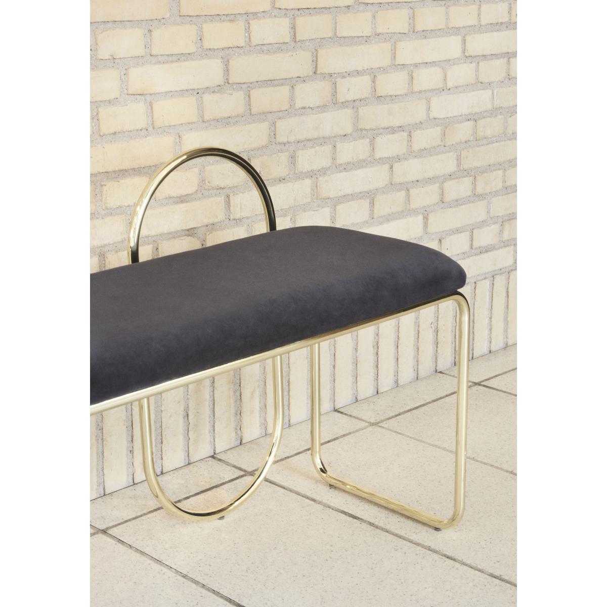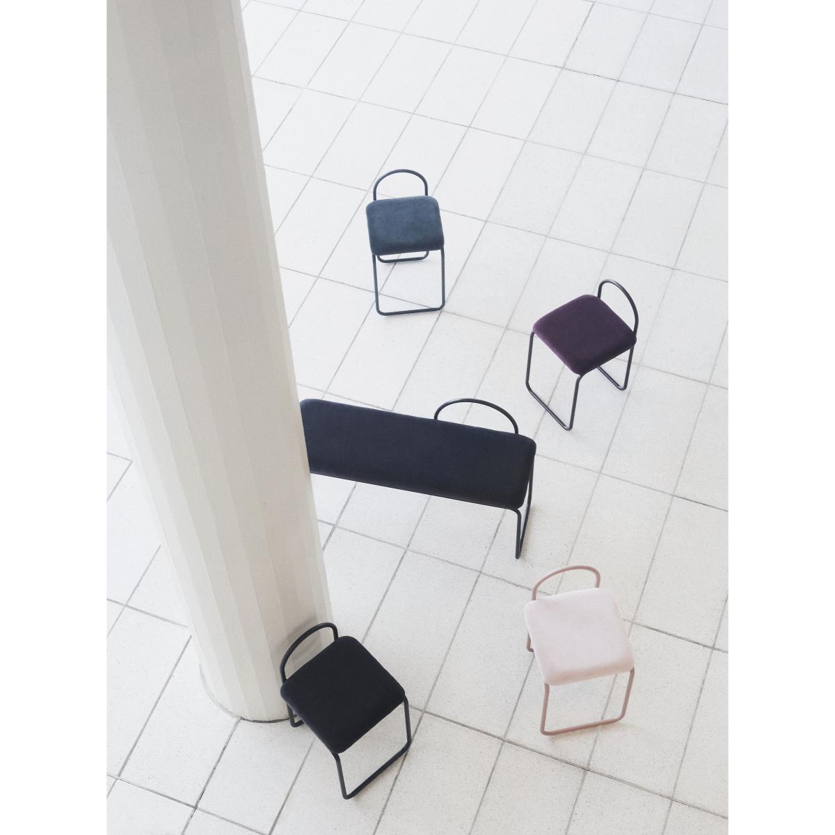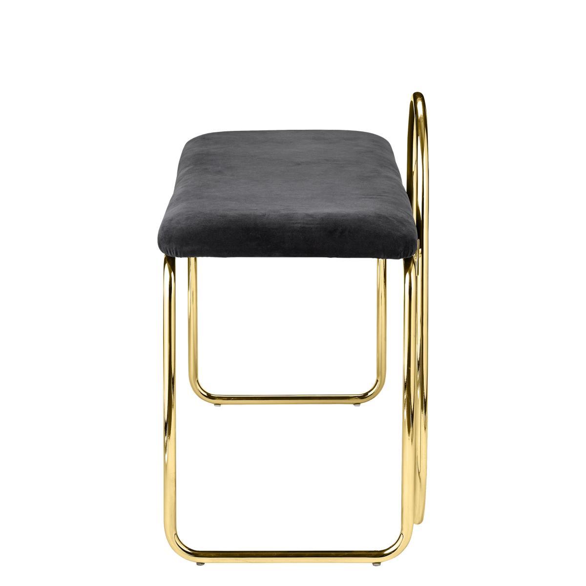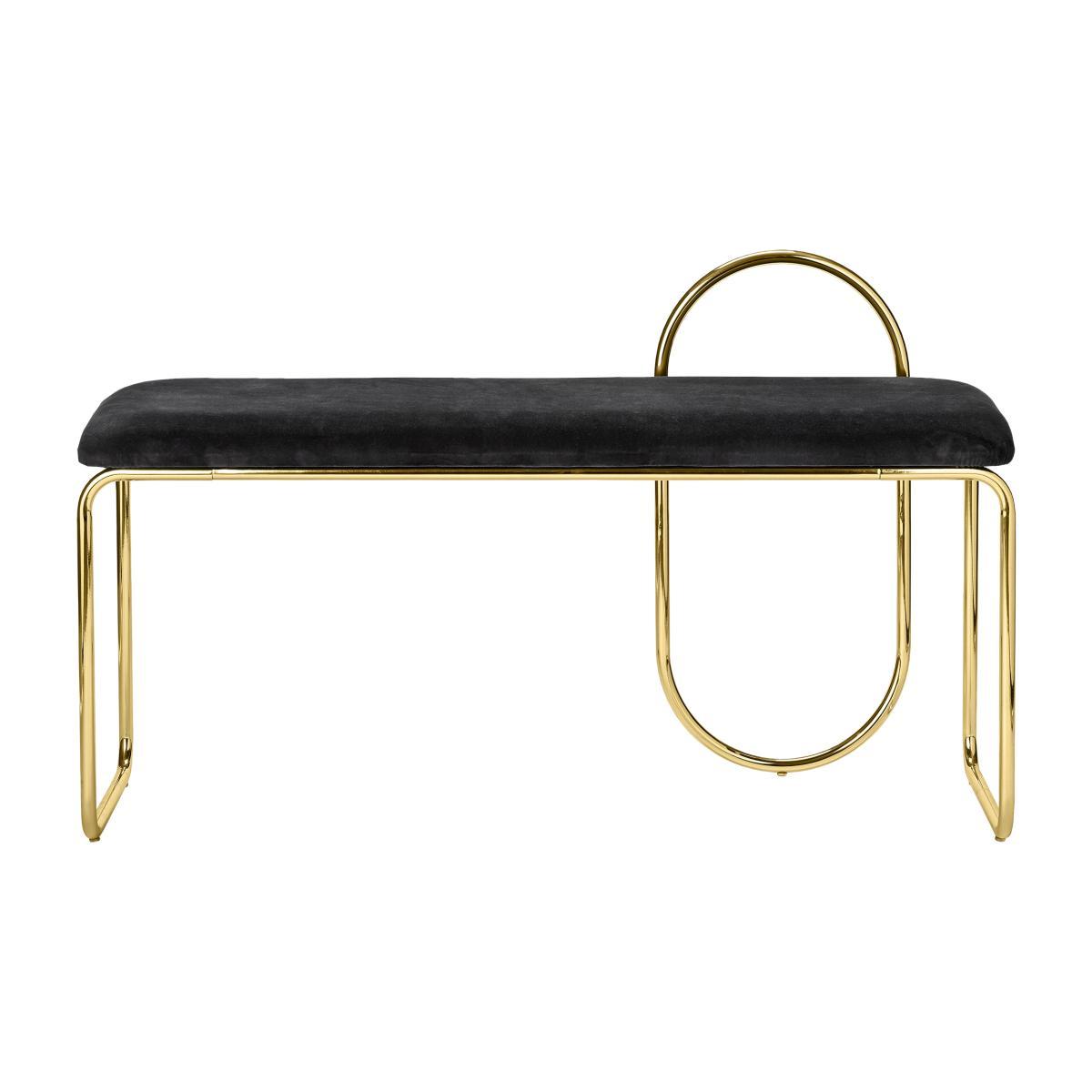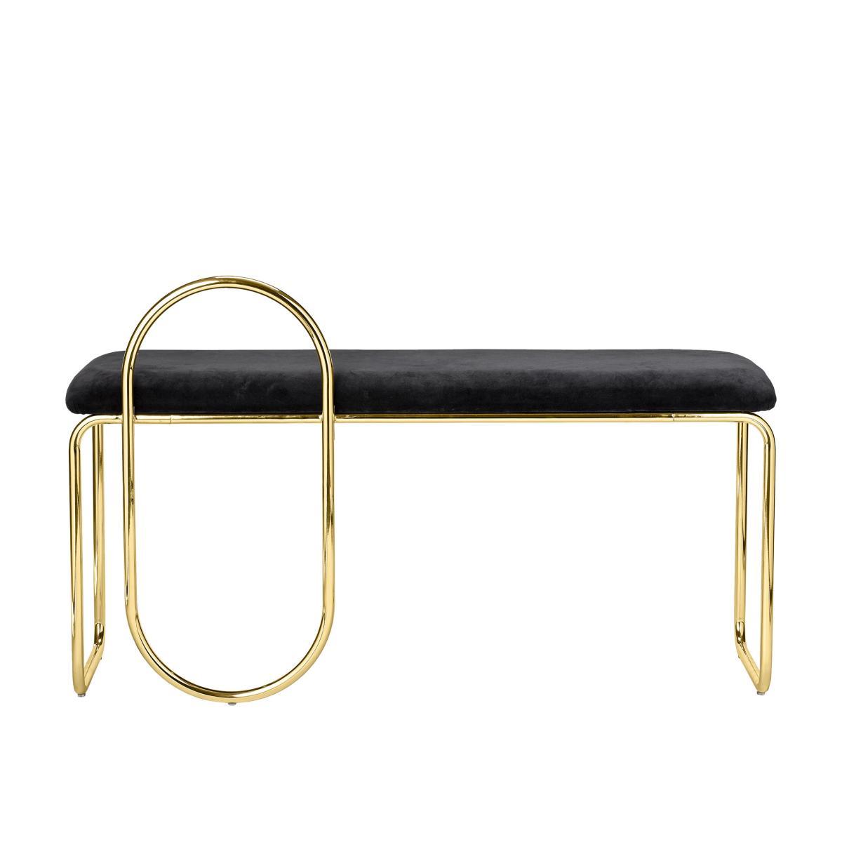 This Art Deco-inspired bench exudes a refined and glamorous spirit. Its comfortable padded seat is covered with a luxurious velvet that feels warm and silky to the touch. Simple and graphic, the metal tube structure is reminiscent of furniture designed at the beginning of the 20th century. The oval part behind the seat adds character and personality to this piece of furniture. It is a bench that will bring a certain cosy conviviality into your home. It would be ideal in an entrance, living room or to create a chic lounge area in any room of the house: bedroom, dressing room, etc.