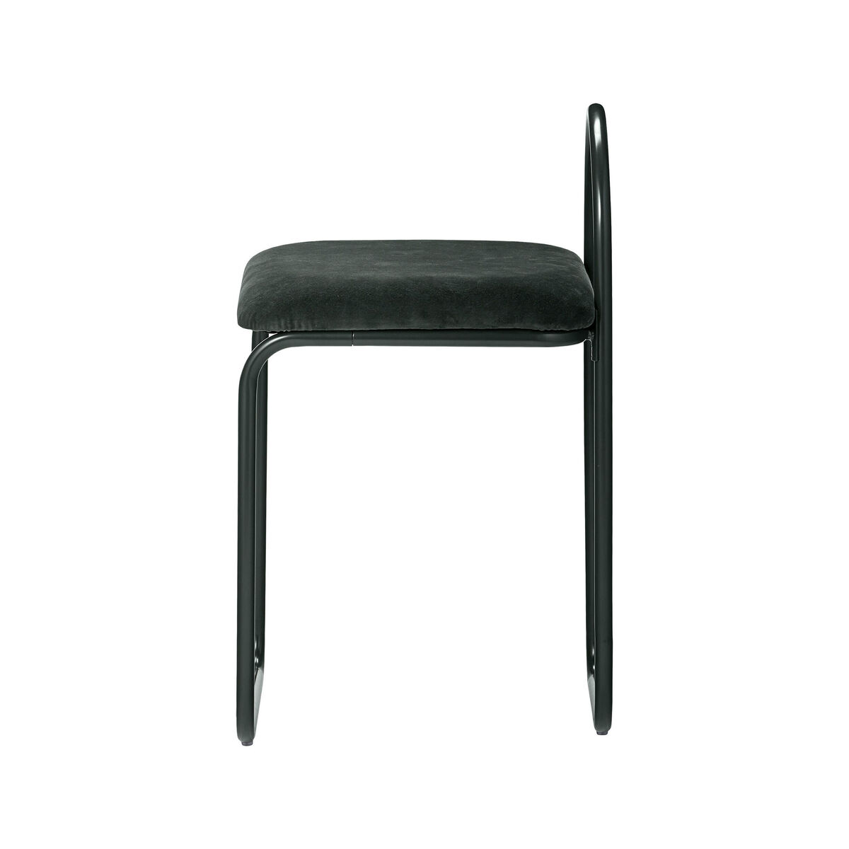 This Art Deco-inspired chair exudes a refined and glamorous spirit. Its comfortable padded seat is covered with a luxurious velvet that feels warm and silky to the touch. Simple and graphic, the metal tube structure is reminiscent of furniture designed at the beginning of the 20th century. The oval back adds character and personality to this piece of furniture. This chair adds a cosy and chic touch to your home. It is ideal around a table, behind a desk or a dressing table.