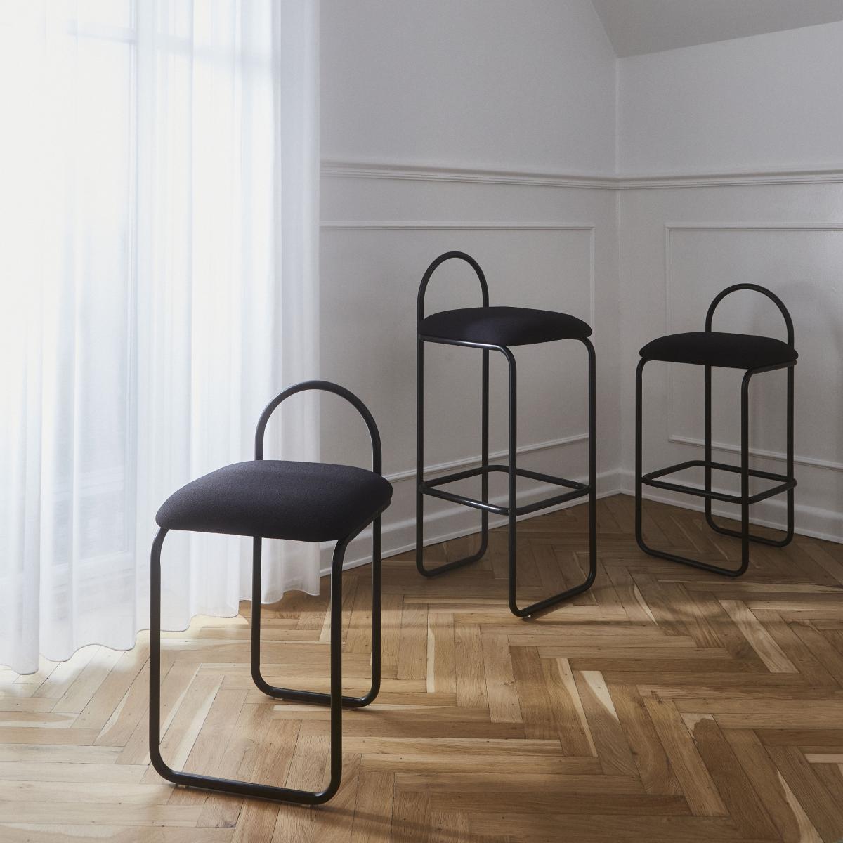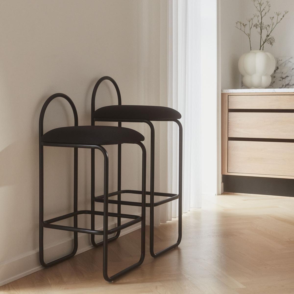 This Art Deco-inspired high stool exudes a refined and glamorous feel. The comfortable padded seat is covered with a recycled polyester fabric (the seat of the stool is made from 2.5 recycled plastic bottles). Simple and graphic, the metal tube structure is reminiscent of furniture designed at the beginning of the 20th century. The oval back adds character and personality to this piece of furniture. This high stool adds a cosy and chic touch to your home. Available in two different heights, it’s ideal around a high table or bar.
