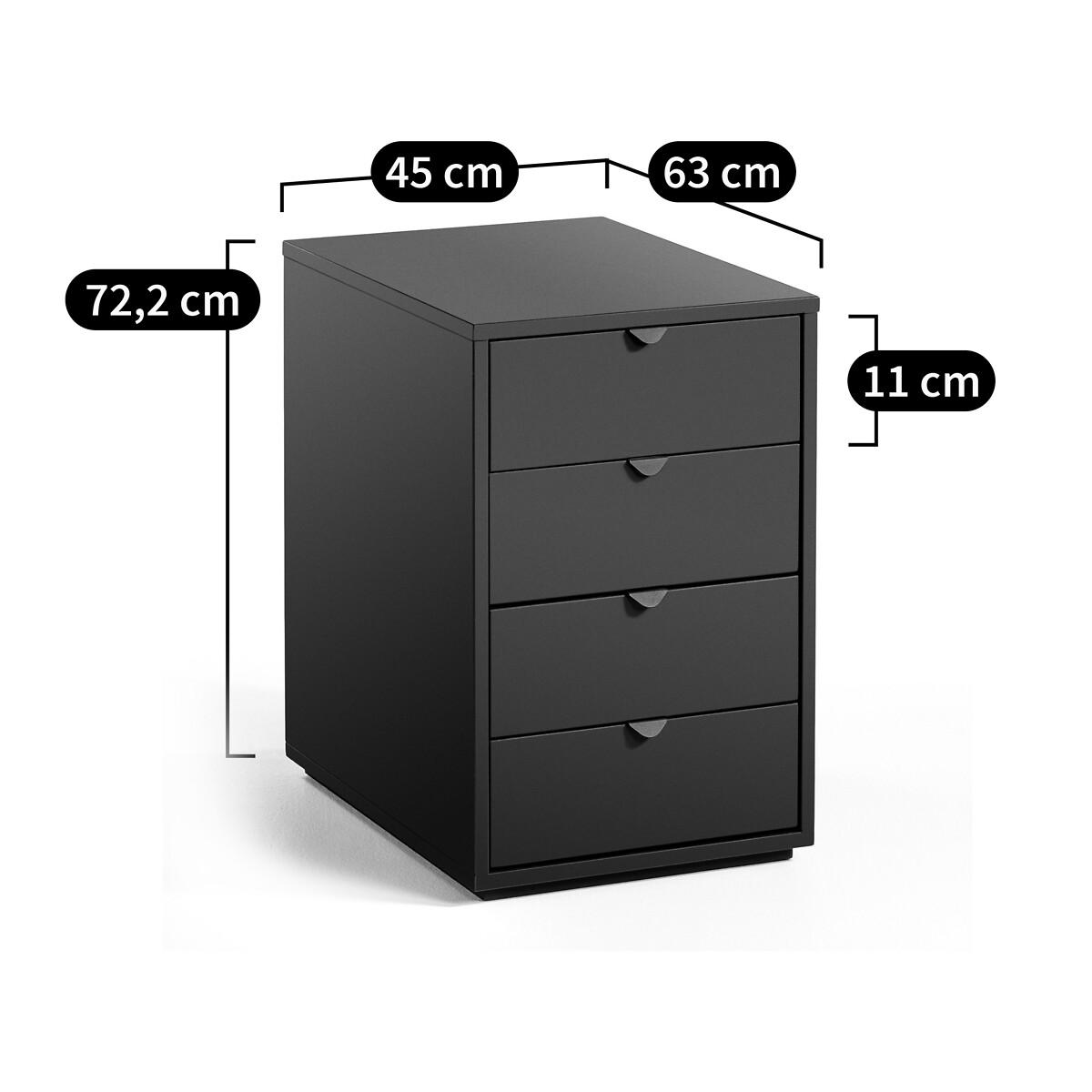 The Angus 4 drawers metal unit. Combine with Angus metal tabletop (sold on our website) to create your workspace. Product Details • In steel with epoxy finish • Soft closure system • 4 drawers. Dimensions • Total: L45 x H72.2 x D63cm • Usable drawer dimensions : L37 x H11 x D46.5cmDelivery. Your cabinet will be delivered to your door. Parcel dimensions and weight1 parcel • L69 x H83 x D51cm • 46kg