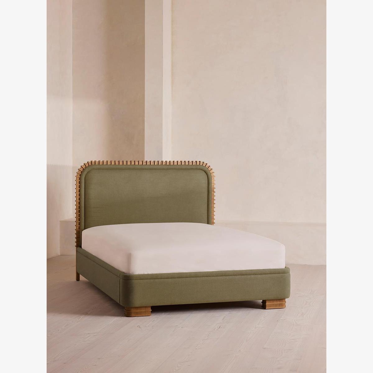 I’m a fan of the Angus for its softly curved headboard and muted sage linen upholstery - the subtle stud detail adds just enough edge without overpowering the space. Its low, solid frame feels both contemporary and welcoming, making it a versatile centrepiece rather than a decorative afterthought. This bed works particularly well in Scandi-inspired schemes or rooms that lean towards mid-century modern and organic minimalism. To style it, layer a crisp white duvet with a couple of textured throws in natural fibres, then add scatter cushions in complementary tones such as terracotta or soft ochre. Pair with simple timber bedside tables and a woven rug underfoot to reinforce the warm-neutrals palette, and finish with matte-black or brass reading lamps for a considered, lived-in look.