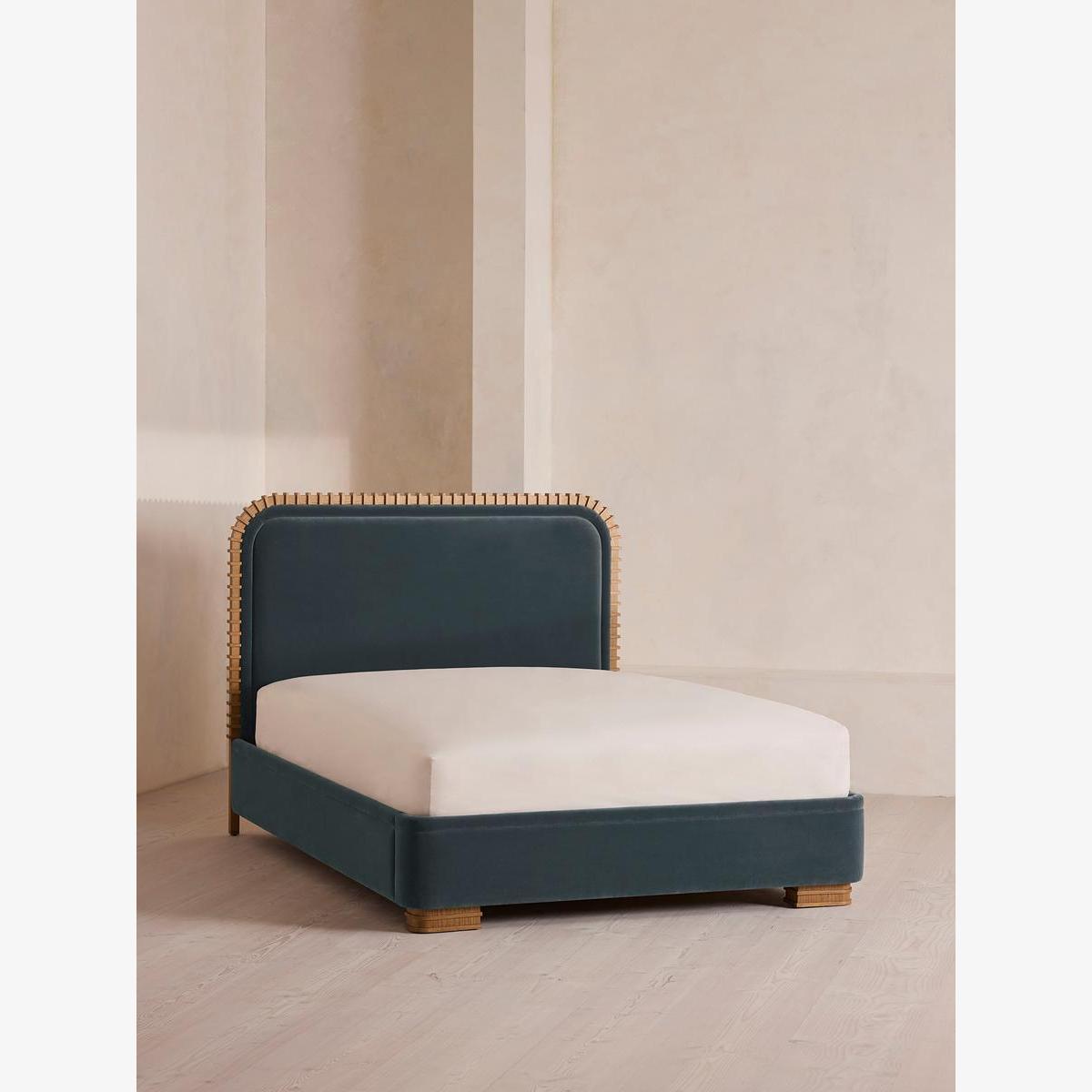 I’m a fan of this Angus bed for its deep, velvety finish and streamlined silhouette - it immediately grounds a room without feeling fussy. The grey-blue hue works equally well in a Scandi-mix scheme or a moody, contemporary setting, and the low foot end keeps sight-lines clean in smaller spaces. For styling, drape crisp white or oatmeal linen bedding to soften the richness of the velvet, then layer in textured cushions - think boucle or linen - in complementary tones. Pair it with oak or brass-legged bedside tables, a neutral jute rug and simple wall art to strike the balance between comfort and sophistication.