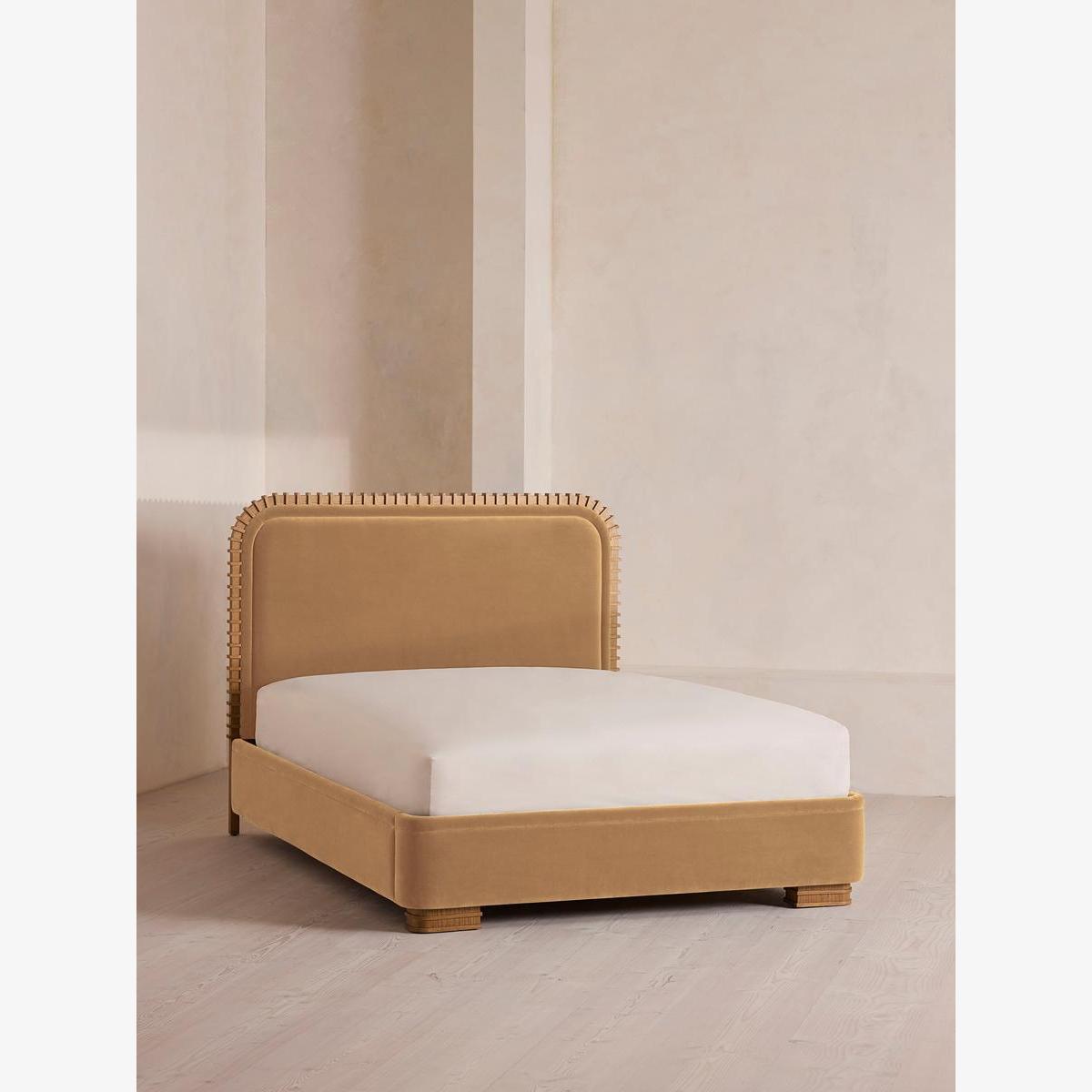 I’m a big fan of the Angus bed in camel velvet for its warm, grounding tone and soft hand-feel. It slots straight into a Scandi-inspired space or sits equally well in a more eclectic, layered interior - think natural timbers, muted rugs and warm metallic accents. For styling, keep your bedding crisp in ivory or oatmeal and introduce texture with a chunky knitted throw or boucle cushions in complementary shades. Pair with simple wooden or brass-framed bedside tables and low-profile lighting to let the bed’s upholstery take centre stage.