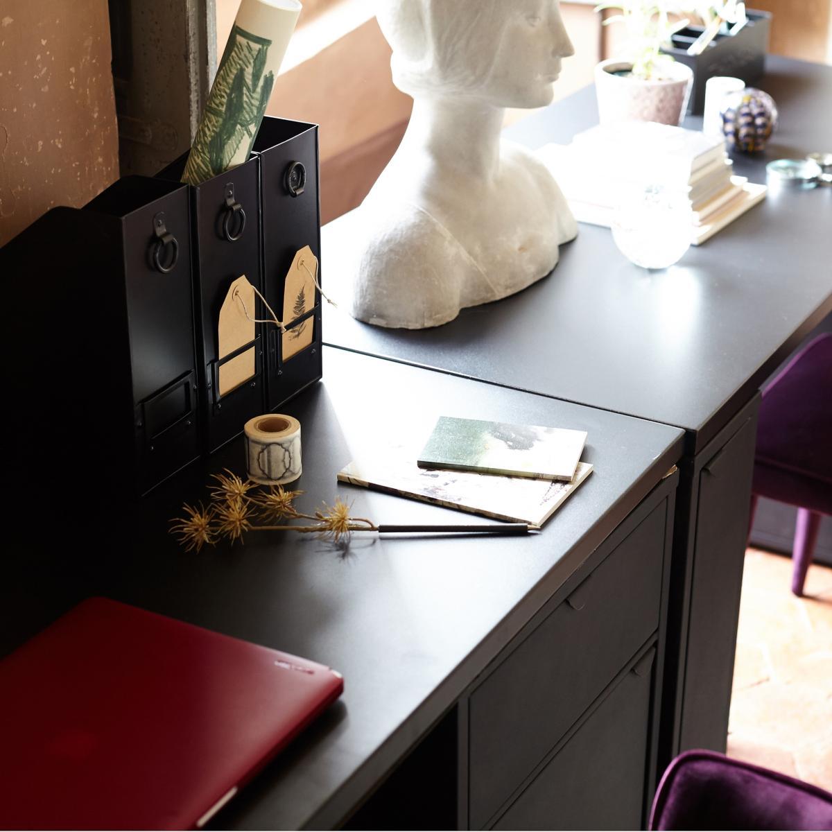 I love this grey metal pedestal as a versatile storage piece that offers a sleek, contemporary look. It works particularly well in modern or industrial interiors, providing a practical storage solution without bulk. Its compact size makes it ideal for bedrooms, offices, or living rooms where space is limited. For styling, consider pairing it with minimalist accessories or using it as a side-table for lamps and decorative items. To maximise its utility, keep the top surface clear for daily essentials, while using the drawers to organise smaller items and keep the space looking tidy.