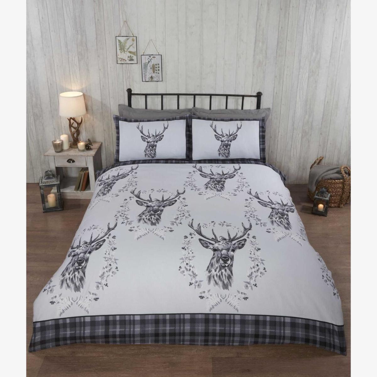 Angus Stag Duvet Cover Set - Grey / Super King