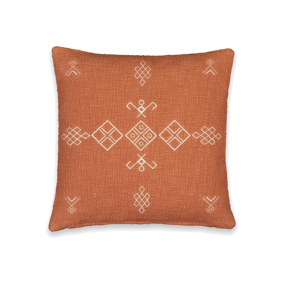 I love the Angusto cushion cover for its warm terracotta tone and subtle geometric embroidery, which bring a touch of texture and interest without overwhelming a space. It works particularly well in neutral or earthy interiors, adding a cosy, inviting feel to sofas or armchairs. For styling tips, try mixing it with soft knits or linen throws to emphasise its natural vibe, or layer it with contrasting cushions in complementary colours like deep navy or moss green for a curated look. It’s versatile enough for both modern and rustic schemes, making it a great investment piece to refresh your living space.