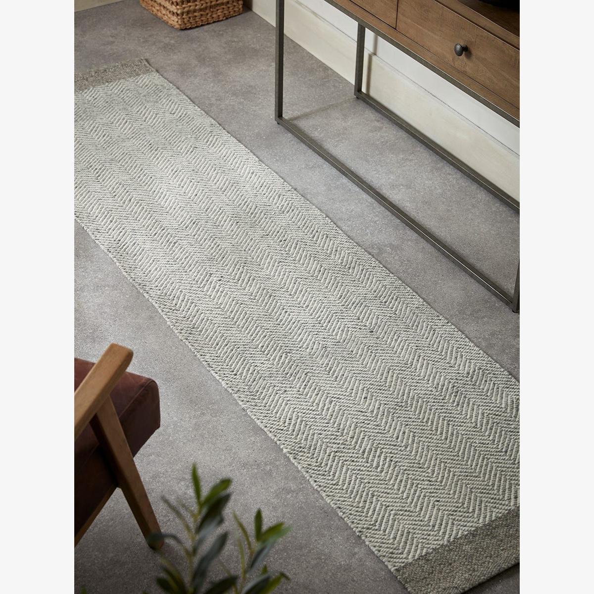 Handwoven from wool, our Ania runner feels wonderfully soft and cosy underfoot, providing the perfect antidote to cold toes on hardwood floors in your hallway, or adding a welcoming, subtle touch of colour to your space. Neutral tones create a two-toned chevron pattern that is finished with two brown borders, providing an extra layer of warmth and a welcome contrast that adds a modern touch to a classic style.