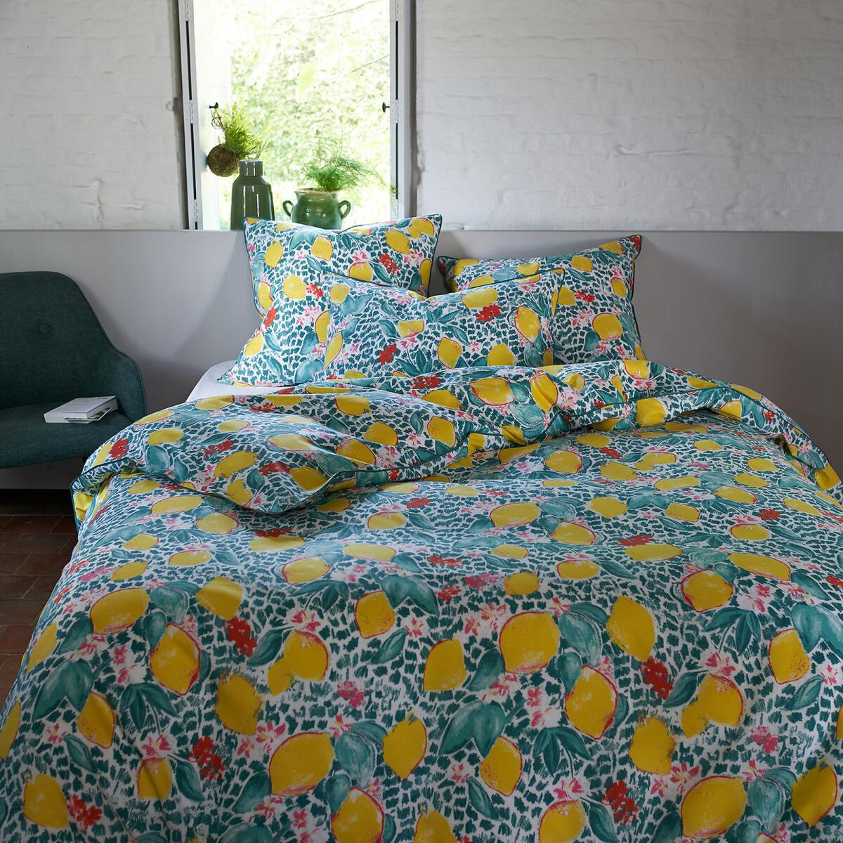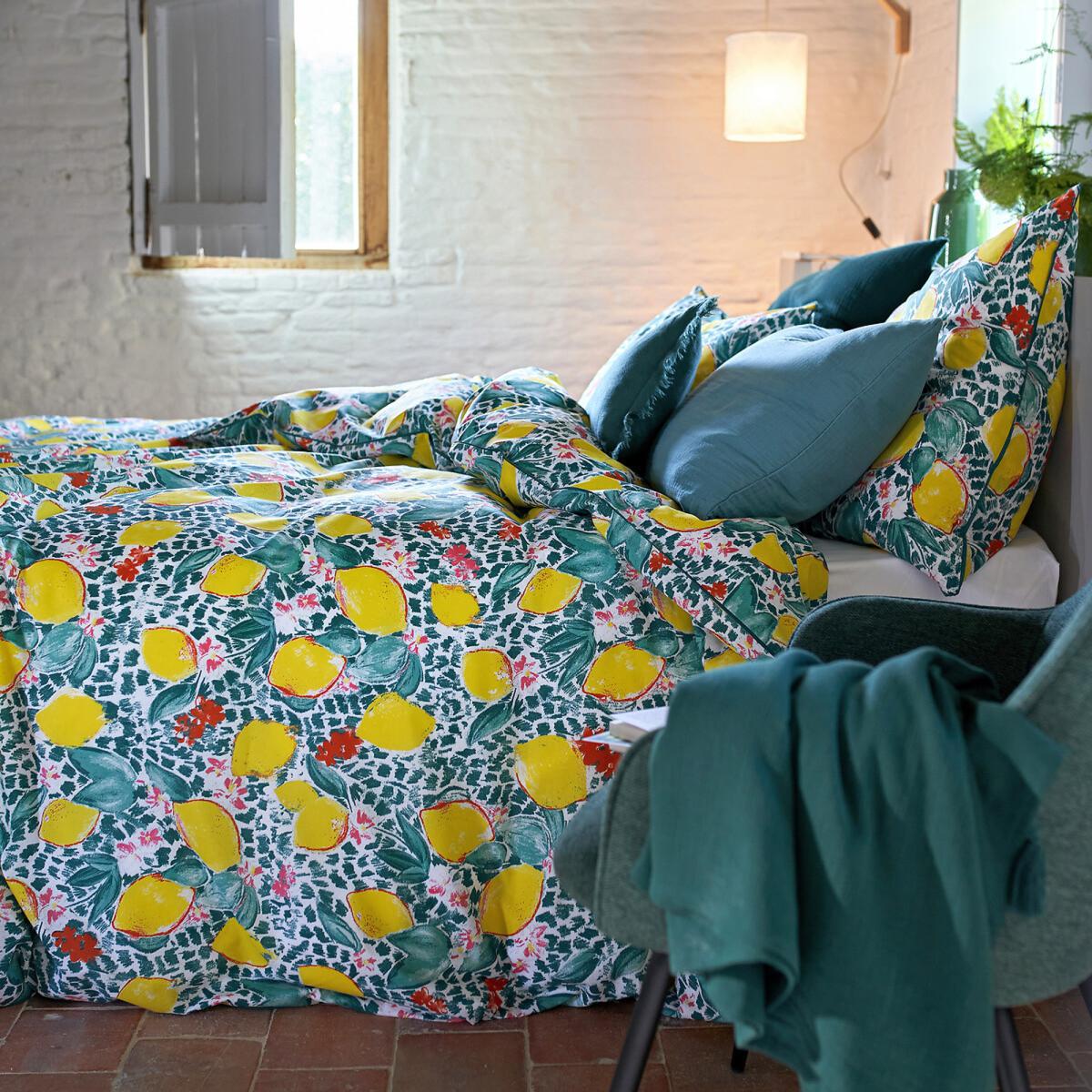 I love this lemon-printed pillowcase for its fresh, vibrant vibe that instantly adds a touch of summer to any space. It works particularly well in relaxed, eclectic, or coastal interiors, where playful patterns and colourful accents are appreciated. For practical styling, try pairing it with neutral bedding to let the print stand out, or mix it with other colourful textiles for a lively layered look. Its cotton fabric makes it durable and comfortable, ideal for everyday use, and its cheerful design can brighten up bedrooms or even lounge areas effortlessly.