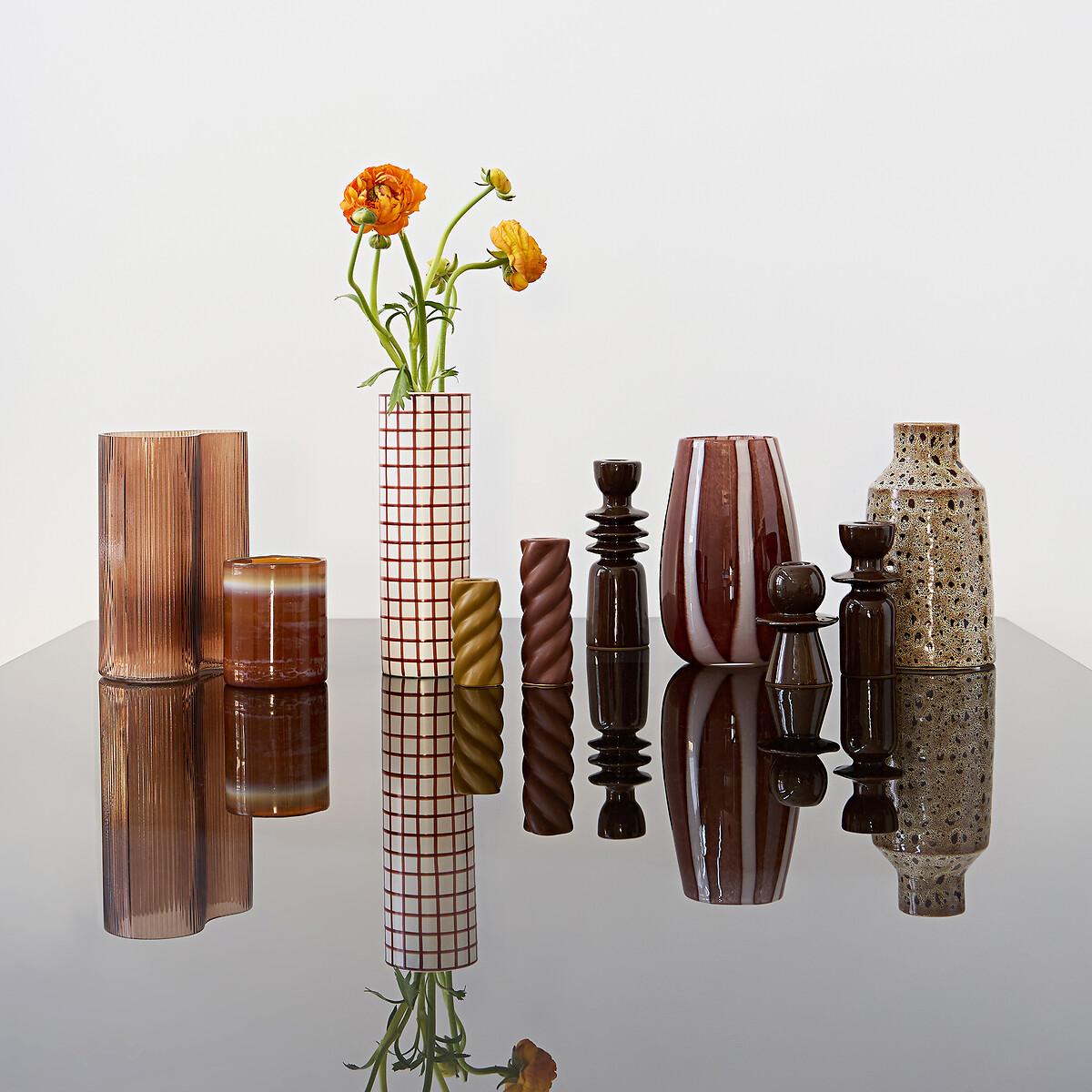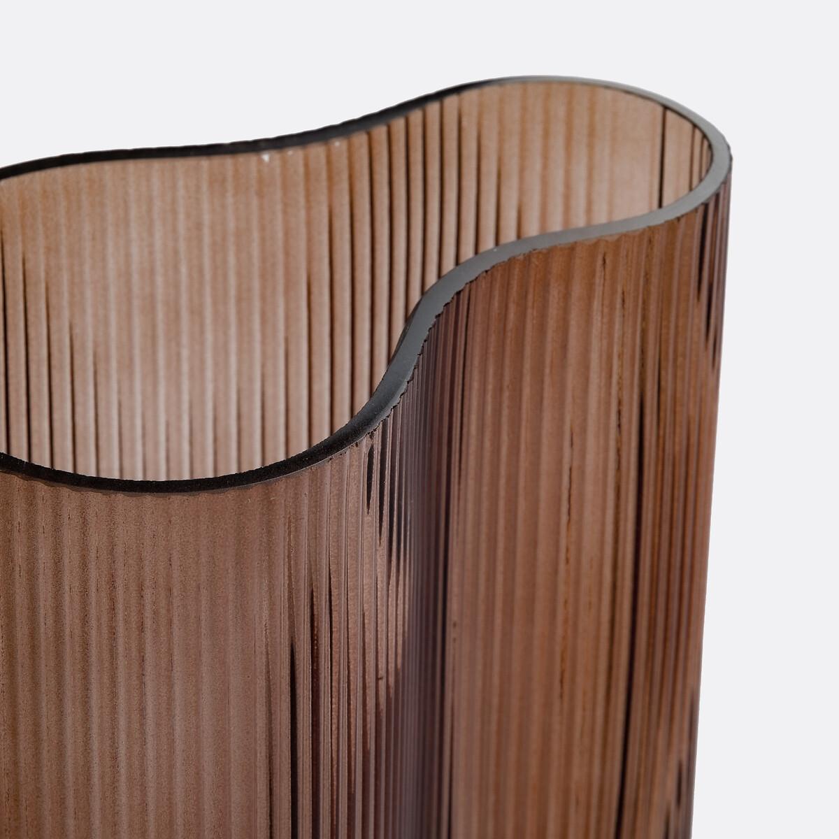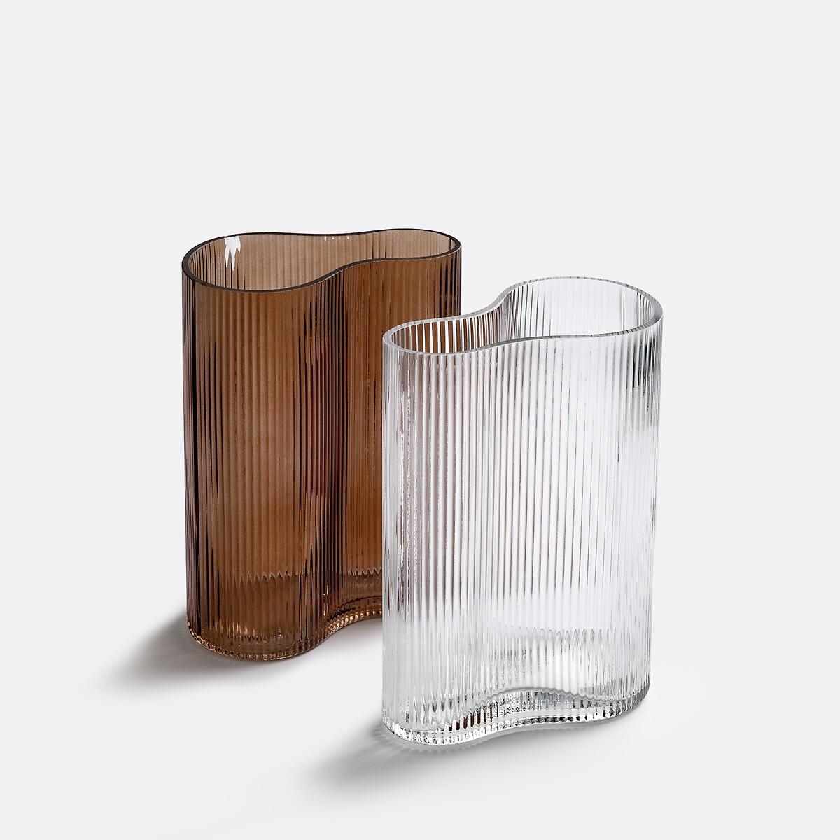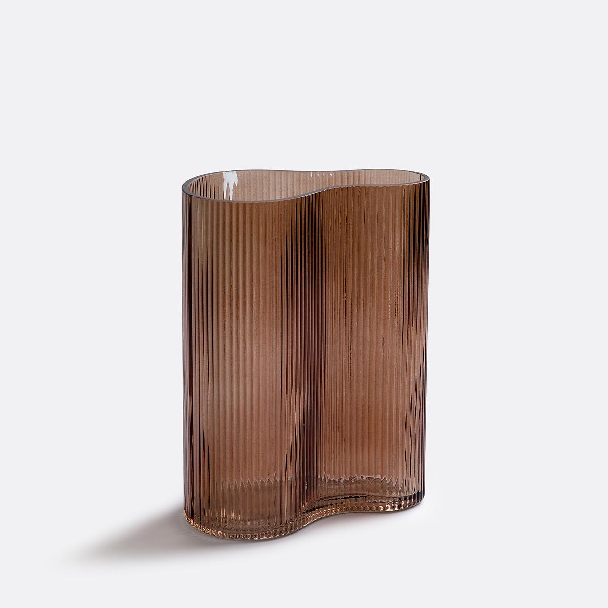 An organic shape and an original design. Here is Anija, the vase that revisits the art deco spirit. In smoked and delicately worked glass, Anija will enhance all your bouquets. Product Details • In textured smoked glass • Shipped in specific packaging designed to avoid any risk of breakage. Dimensions • Width: 17.8cm • Height: 21cm • Depth: 10cm