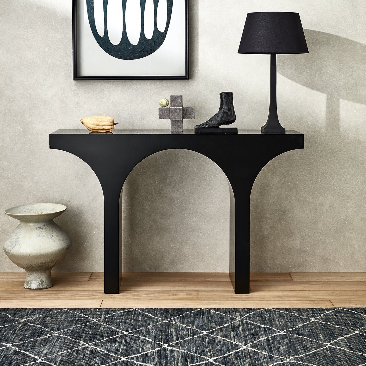 This grand console takes its name from a Roman aqueduct, due to its arched design. Made fromwood with a sleek ebony finish, it's certainly a dramatic addition to your home - we picture it as a stage for photographs and ornaments, with a furry friend curled up in the space underneath.