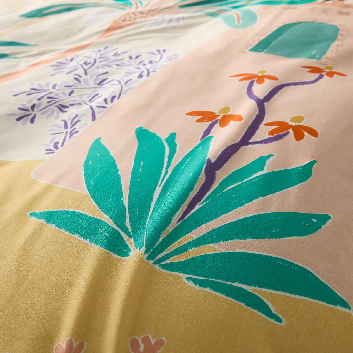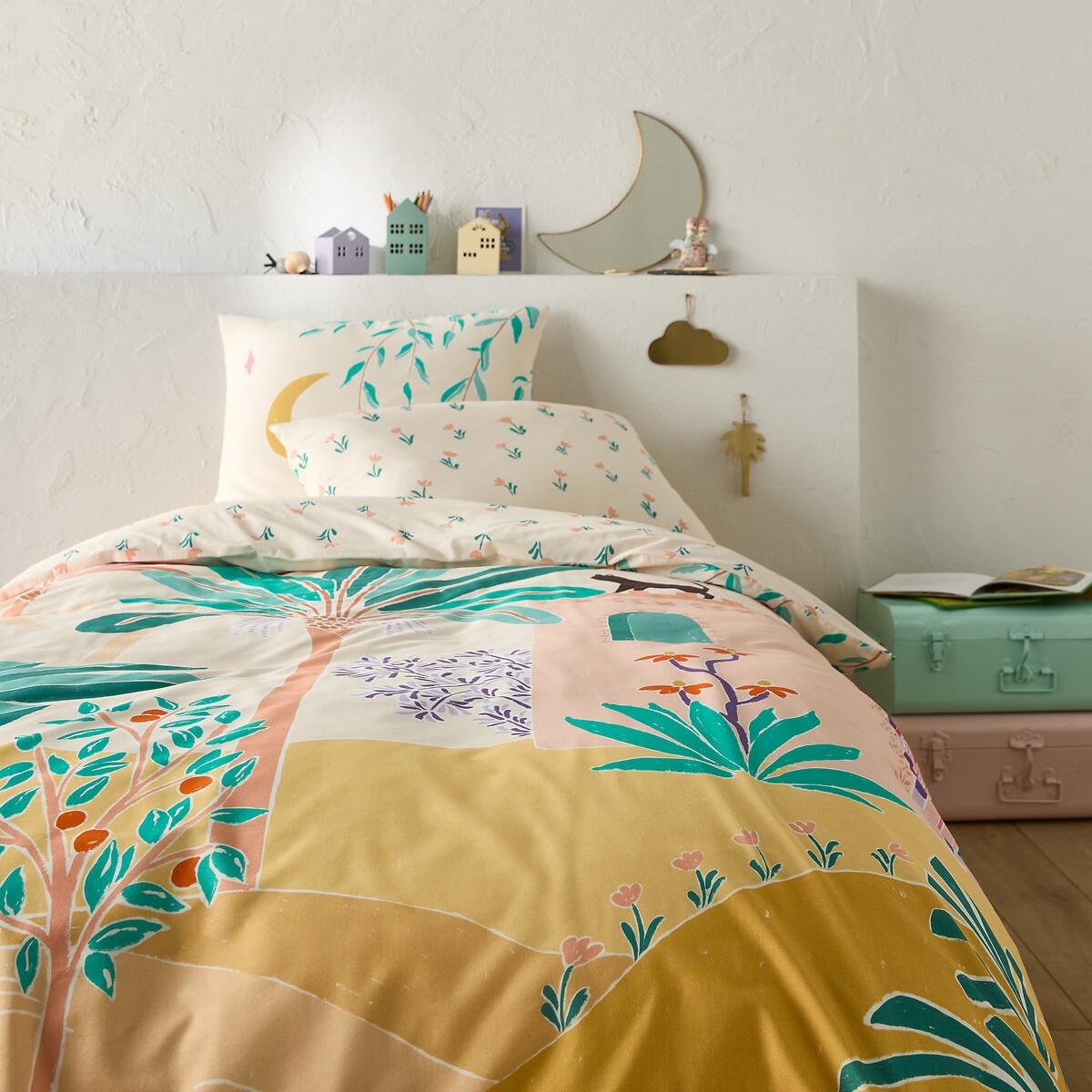 Like an illustration of holiday memories, the Anis duvet cover is adorned with patterns on one side, highlighted by the quality of the digital printing. Plant and palm tree motifs harmonise with a coordinating pattern on the reverse.100% cotton bed linen, a creation by La Redoute Interiors. Cotton is part of our daily lives. We love it for its suppleness and softness. Product Details • 100% cotton • Contains 50% recycled cotton • 144 thread count • Palm tree print on the front / small flower patterns on the back • Straight buttoned hem Match this item with the rest of the bedding in the range for a stylish bedroom. And you can mix and match it with different colours and styles from our other bedding ranges when you want to change things up and create your own unique look. Care Advice • Machine washable at 40°C • By washing your laundry at 40°C instead of 60°C, you limit energy consumption. Dimensions • 140 x 200cm: Single • 160 x 210cm : Double • Recycled cotton. Using recycled cotton is all about conserving resources and reducing waste. • OEKO-TEX® Standard 100. Standard 100 certification by OEKO-TEX® tests textile products for harmful substances via an independent, international label.