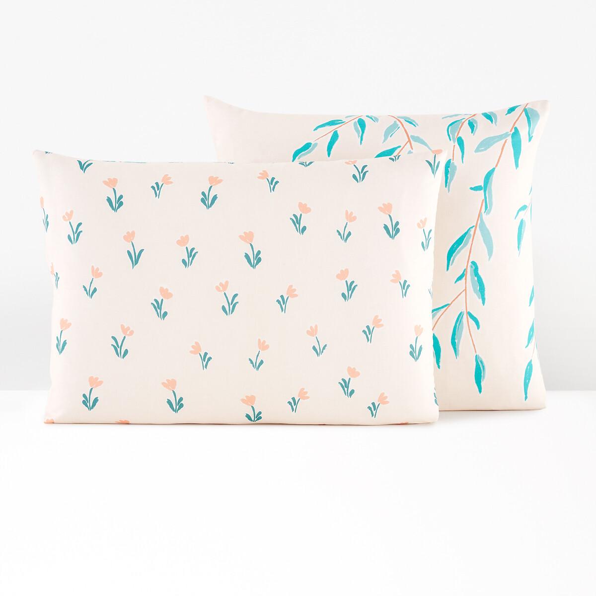 The Anise pillowcase features patterns of foliage and palm trees, with coordinated micro-patterns on the reverse. Quality from digital printing.100% cotton bed linen, a creation by La Redoute Interiors. Cotton is part of our daily lives. We love it for its suppleness and softness. Product Details • 100% cotton • Contains 50% recycled cotton • 144 thread count • Palm tree print on the front / small flower pattern on the back. Match this item with the rest of the bedding in the range for a stylish bedroom. And you can mix and match it with different colours and styles from our other bedding ranges when you want to change things up and create your own unique look. Care Advice • Machine washable at 40°C • By washing your laundry at 40°C instead of 60°C, you limit energy consumption. Dimensions • 50 x 70cm: Rectangular pillowcase • 63 x 63cm: Square pillowcase • 65 x 100cm: Rectangular pillowcase • Recycled cotton. Using recycled cotton is all about conserving resources and reducing waste. • OEKO-TEX® Standard 100. Standard 100 certification by OEKO-TEX® tests textile products for harmful substances via an independent, international label.