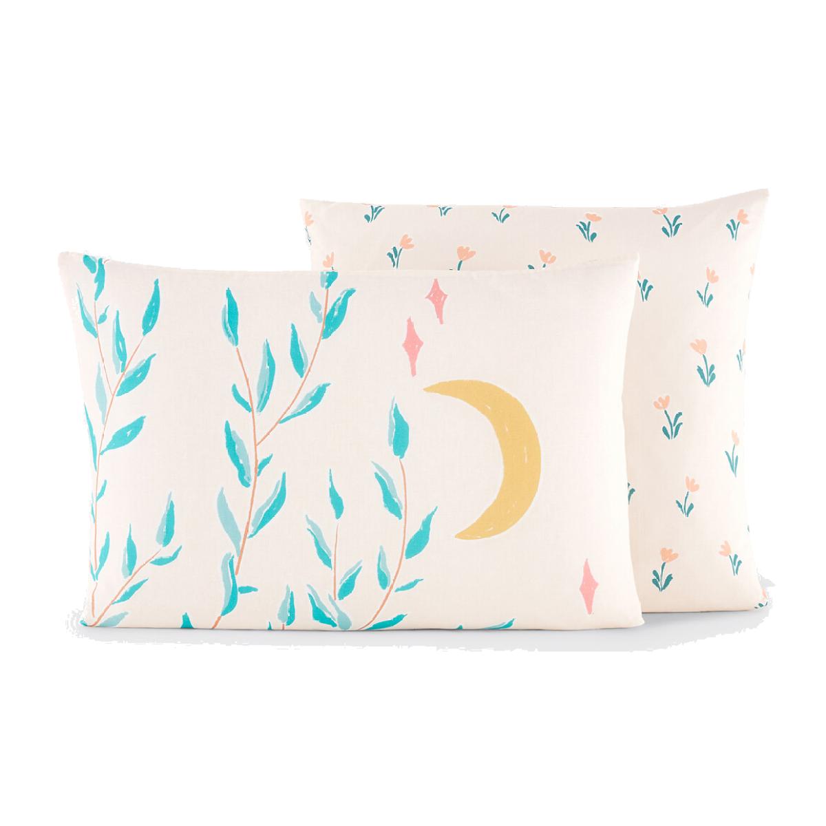 The Anise pillowcase features patterns of foliage and palm trees, with coordinated micro-patterns on the reverse. Quality from digital printing.100% cotton bed linen, a creation by La Redoute Interiors. Cotton is part of our daily lives. We love it for its suppleness and softness. Product Details • 100% cotton • Contains 50% recycled cotton • 144 thread count • Palm tree print on the front / small flower pattern on the back. Match this item with the rest of the bedding in the range for a stylish bedroom. And you can mix and match it with different colours and styles from our other bedding ranges when you want to change things up and create your own unique look. Care Advice • Machine washable at 40°C • By washing your laundry at 40°C instead of 60°C, you limit energy consumption. Dimensions • 50 x 70cm: Rectangular pillowcase • 63 x 63cm: Square pillowcase • 65 x 100cm: Rectangular pillowcase • Recycled cotton. Using recycled cotton is all about conserving resources and reducing waste. • OEKO-TEX® Standard 100. Standard 100 certification by OEKO-TEX® tests textile products for harmful substances via an independent, international label.