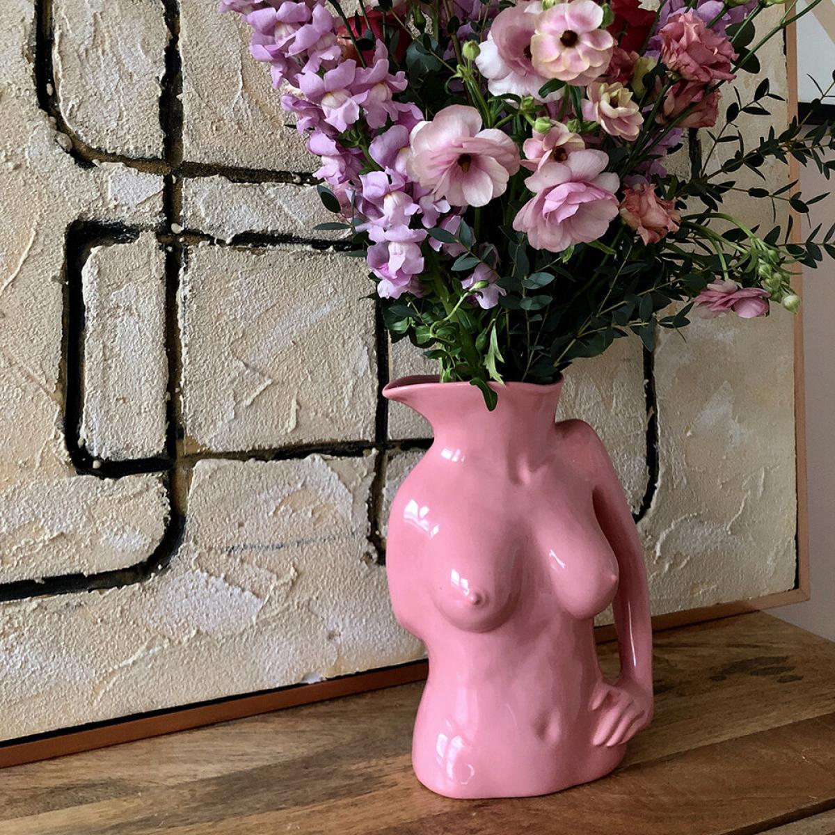 I love this vase because of its playful yet sculptural presence - it’s a great way to add a touch of humour and personality to a space. The shiny pink finish makes it work beautifully in contemporary and eclectic interiors, especially in bright or neutral schemes where it can serve as a statement piece. For styling tips, I suggest pairing it with minimal greenery or simple flowers, allowing the shape and colour to take centre stage. It also looks fantastic grouped with other quirky ceramics or placed on a shelf to add a pop of colour, making it versatile for both living rooms and bedrooms.