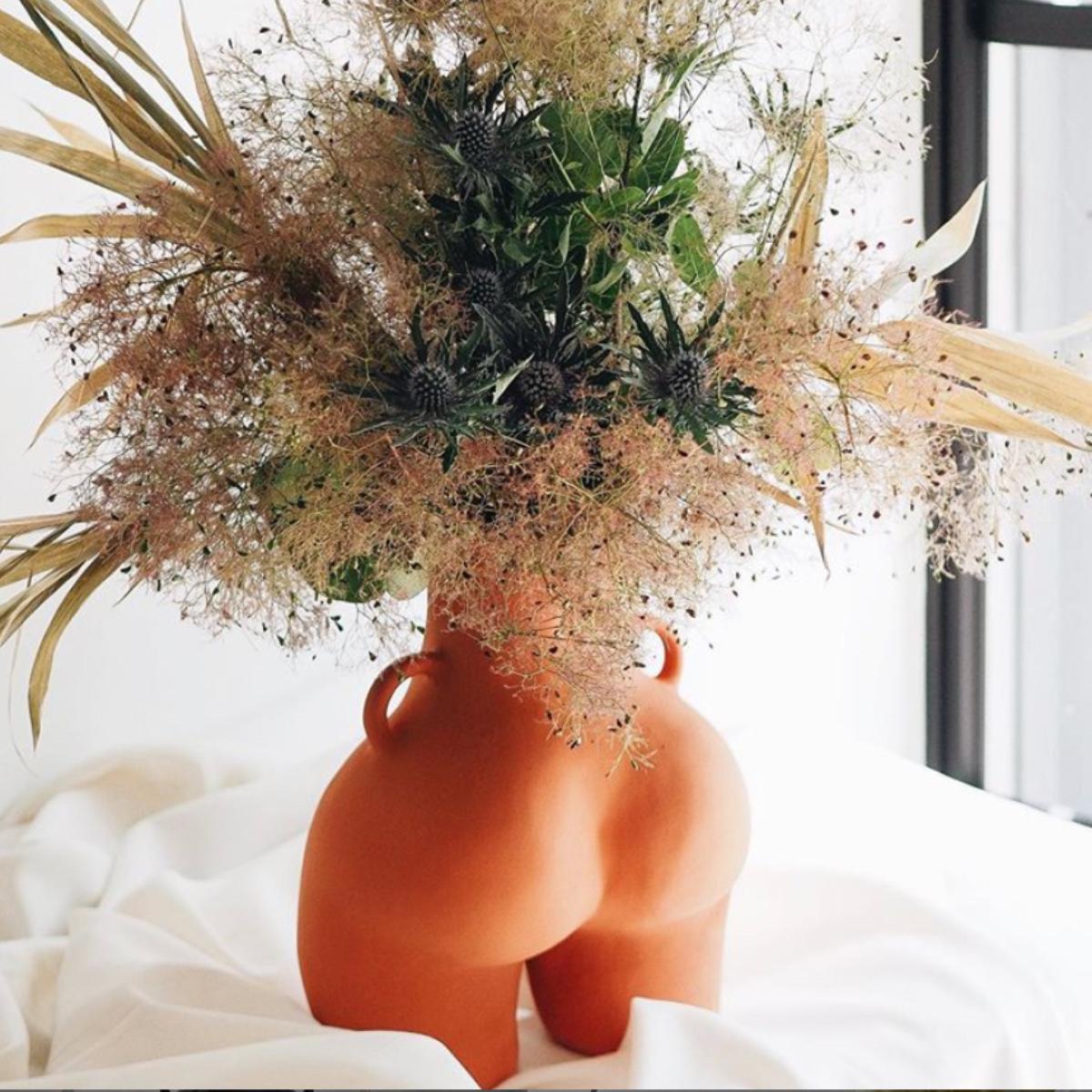 Our Love Handles vase is shaped like the hips and bottom of a nude woman and features two ‘love’ handles at the waist. The female form holds many things - secrets, joys, desires - and in this case, let it hold vivacious blooms and foliage.
