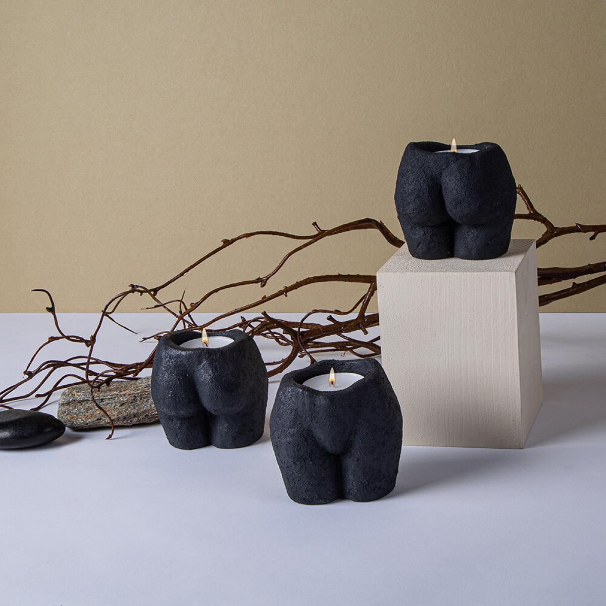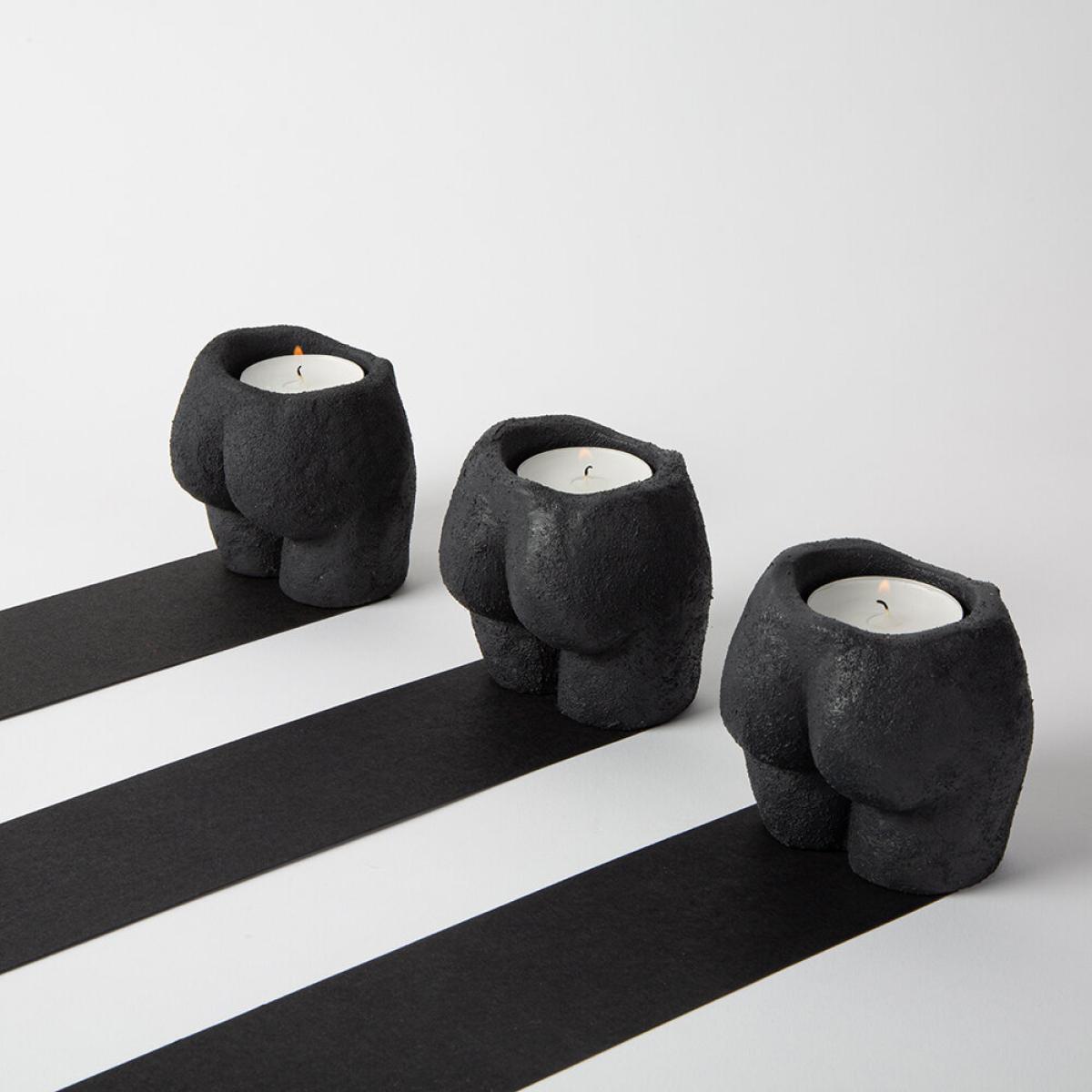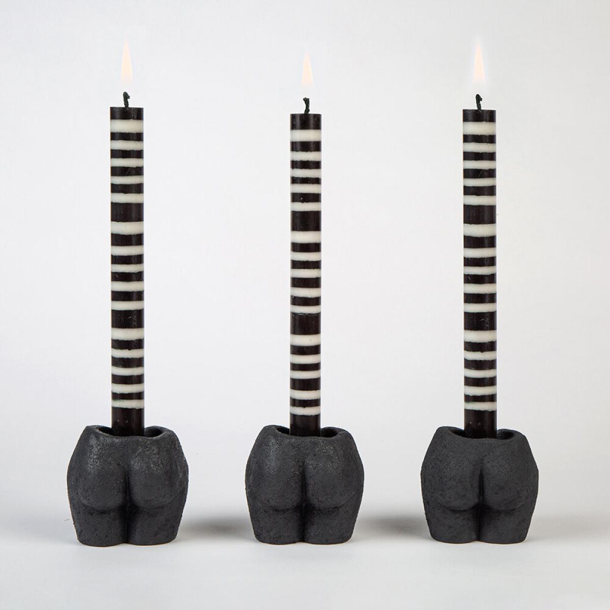 Bring your style up from rock bottom with this set of three candle holders from Anissa Kermiche. Handmade from earthenware, these delightful derrières can hold tealights or tapered candles. The perfect gift for those with a cheeky taste.