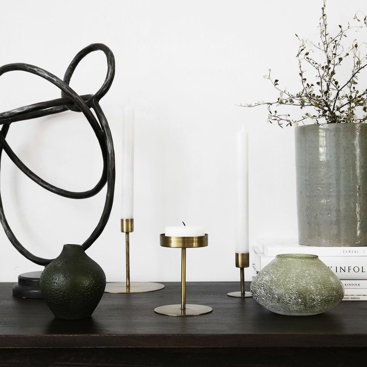 These Anit candlesticks from House Doctor boast a raw and minimalist expression that fits well with both modern and bohemian interior decor styles. The Anit makes for an elegant candlestick on its own, but becomes especially eye-catching in a larger ensemble. Combine the Anit with candlesticks of varying heights and materials to create a beautiful still life with a stately array of lanterns, vases, and beautiful ornaments.