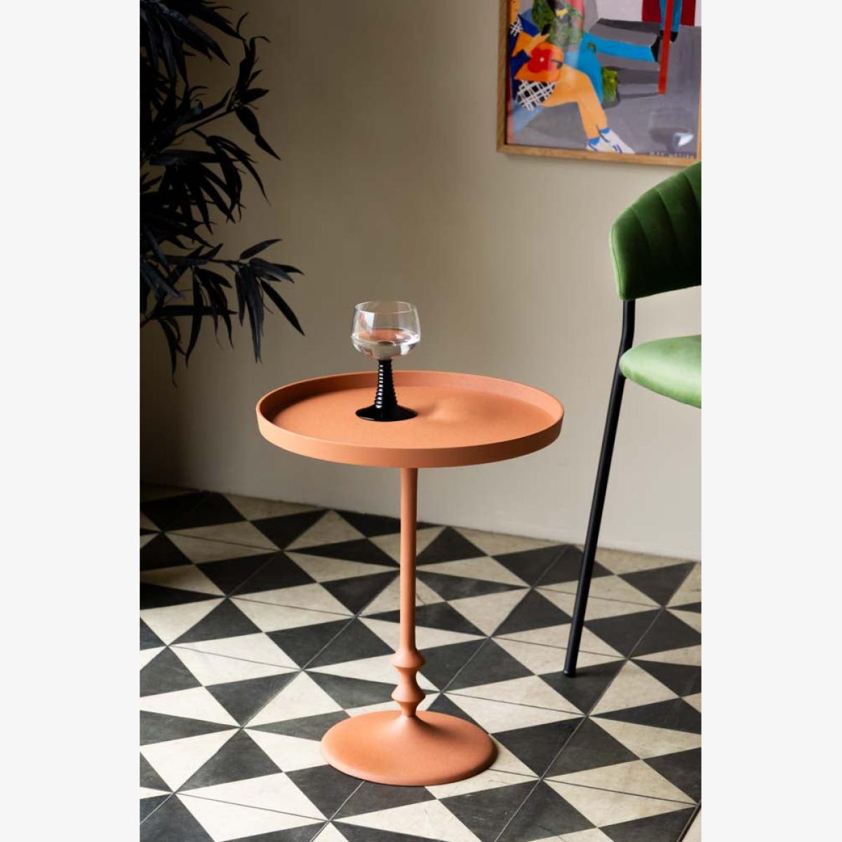 <!--td --> Get ready to meet your new favourite accent piece: the Anjou Metal Side Table in Rust Orange! This fabulous end table is here to add a warm glow to your space with its elegant design and inviting hue. Let's talk about its versatility, shall we? This table is as light and breezy as a summer's day, making it a doddle to move around. So whether you're rearranging your lounge for the umpteenth time or just need a spot to rest your morning brew, the Anjou Side Table has got you covered. But let's not forget its standout feature: that stunning rust orange colour! It's like a sunset captured in furniture form, bringing a burst of personality to any room. Pair it with your more neutral pieces for an instant style upgrade, or let it take centre stage all on its own – because who doesn't love a statement piece? So go on, inject a splash of colour into your life with the Anjou Metal Side Table. Trust us, your lounge will thank you for it.