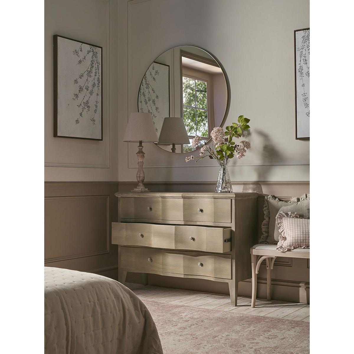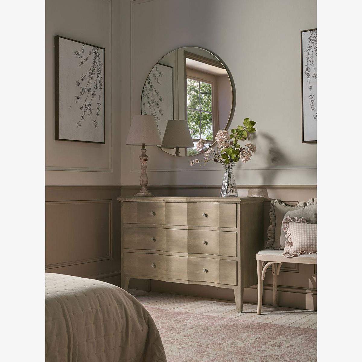 I’m a fan of the Ankara chest for its gently curved drawer fronts and muted, earthy finish - it brings subtle shape and warmth without overwhelming a room. It works equally well in a contemporary Scandi bedroom, a modern farmhouse hallway or even a pared-back coastal living space. Styling tip: anchor a round mirror above, then layer in a small table lamp, a low ceramic vase with fresh greenery and a neat tray for everyday bits. The soft tone means you can introduce bolder accessories - think a charcoal-lined frame or brass candle holders - without clashing.