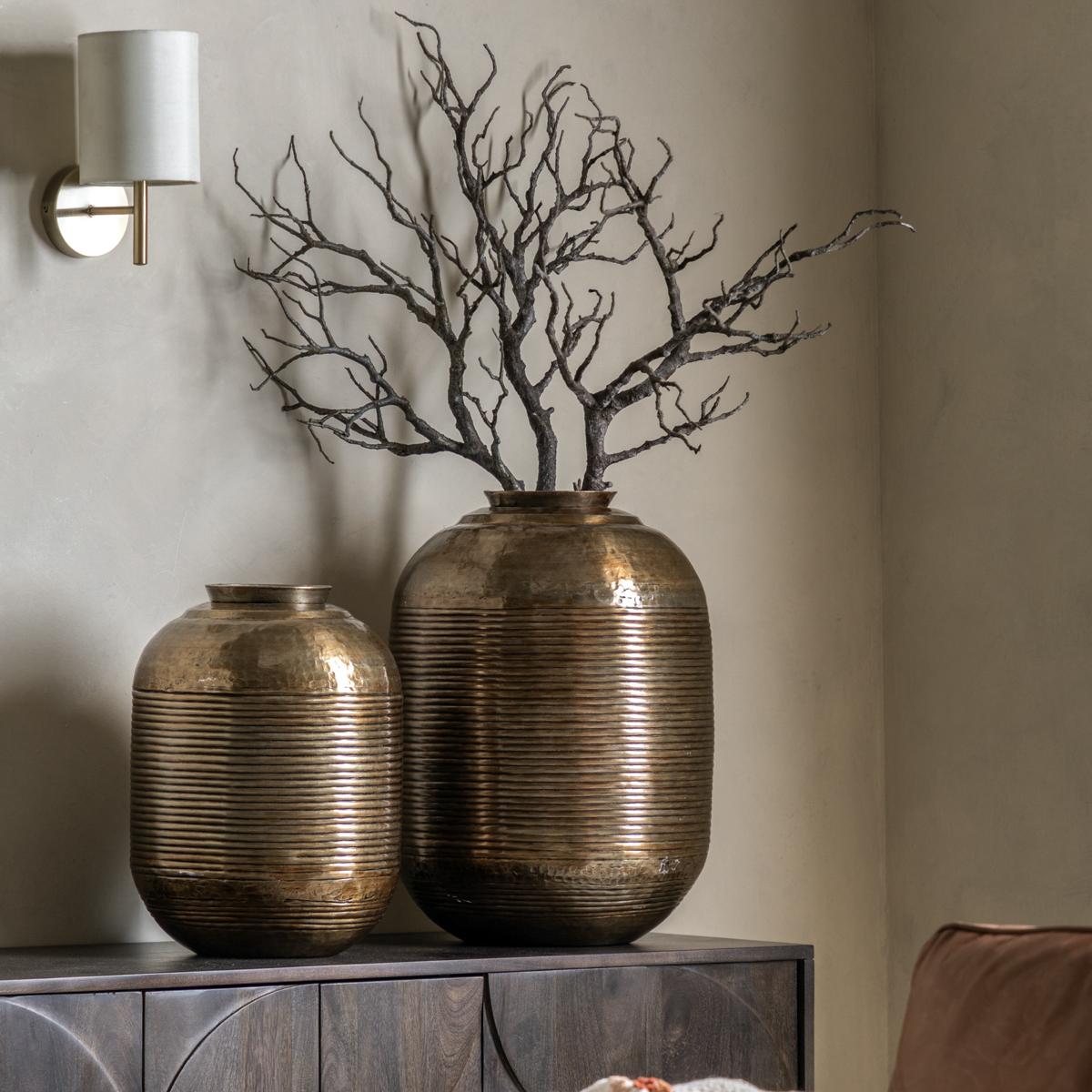 I love the Ankara Metal Vase for its striking earthy tone and textured surface, which makes it a versatile piece for both contemporary and rustic interiors. Its substantial size works well as a standalone statement or paired with dried stems, branches, or minimalist floral arrangements to add height and visual interest. I recommend placing it on a sideboard, console, or as a focal point on the floor in a corner for maximum impact. For styling tips, consider contrasting its warm, metallic finish with cooler colour palettes or pairing it with other natural materials like wood or woven fibres for a cohesive, layered look. This vase lends itself particularly well to boho, industrial, or global-inspired spaces.