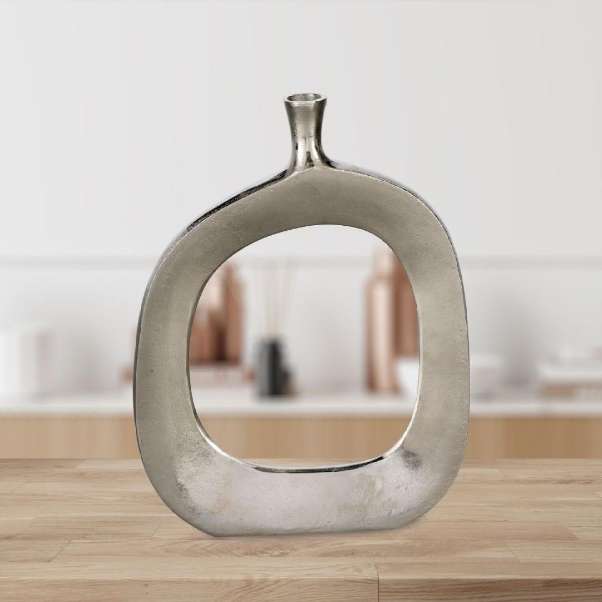 Ankarefo aluminium vase, featuring a round, cut-out design and an aged nickel finish. A striking piece that effortlessly blends modern artistry with vintage charm, this exquisite vase features a distinctive that adds a touch of contemporary elegance to any decor. The aged nickel finish imparts a timeless, weathered look, giving the vase a unique character and a sense of history. Its stature makes it an ideal centrepiece for showcasing flowers, branches or as a standalone decorative piece. The unique cut-out pattern allows light to pass through, creating captivating shadows and enhancing the overall visual appeal. The aged nickel finish provides a sophisticated, antique look that complements a variety of interior styles, from industrial and rustic to modern and eclectic. Whether placed on a floor, table or mantel, the Ankarefo vase adds a touch of refined elegance and artistic flair to any space. Ankarefo aluminium vase, featuring a round, cut-out design and an aged nickel finish. A striking piece that effortlessly blends modern artistry with vintage charm, this exquisite vase features a distinctive that adds a touch of contemporary elegance to any decor. The aged nickel finish imparts a timeless, weathered look, giving the vase a unique character and a sense of history. Its stature makes it an ideal centrepiece for showcasing flowers, branches or as a standalone decorative piece. The unique cut-out pattern allows light to pass through, creating captivating shadows and enhancing the overall visual appeal. The aged nickel finish provides a sophisticated, antique look that complements a variety of interior styles, from industrial and rustic to modern and eclectic. Whether placed on a floor, table or mantel, the Ankarefo vase adds a touch of refined elegance and artistic flair to any space.