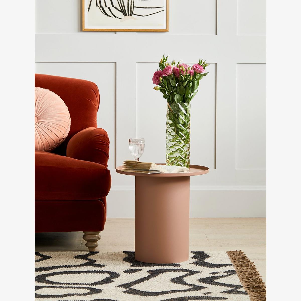 I love this dusky pink side table for its pared-back silhouette and soft matte finish. It slots neatly into Scandi, mid-century or contemporary schemes, adding a subtle colour hit without ever feeling over the top. Its compact size makes it ideal as a beside table in the bedroom or a pick-up spot next to your sofa. For styling, keep it simple: top with a small stack of books, a tactile ceramic vase and a slim-lined lamp to introduce height and texture. The muted pink works beautifully against greys, whites or warm timber tones, so you can easily build a calm, cohesive corner.