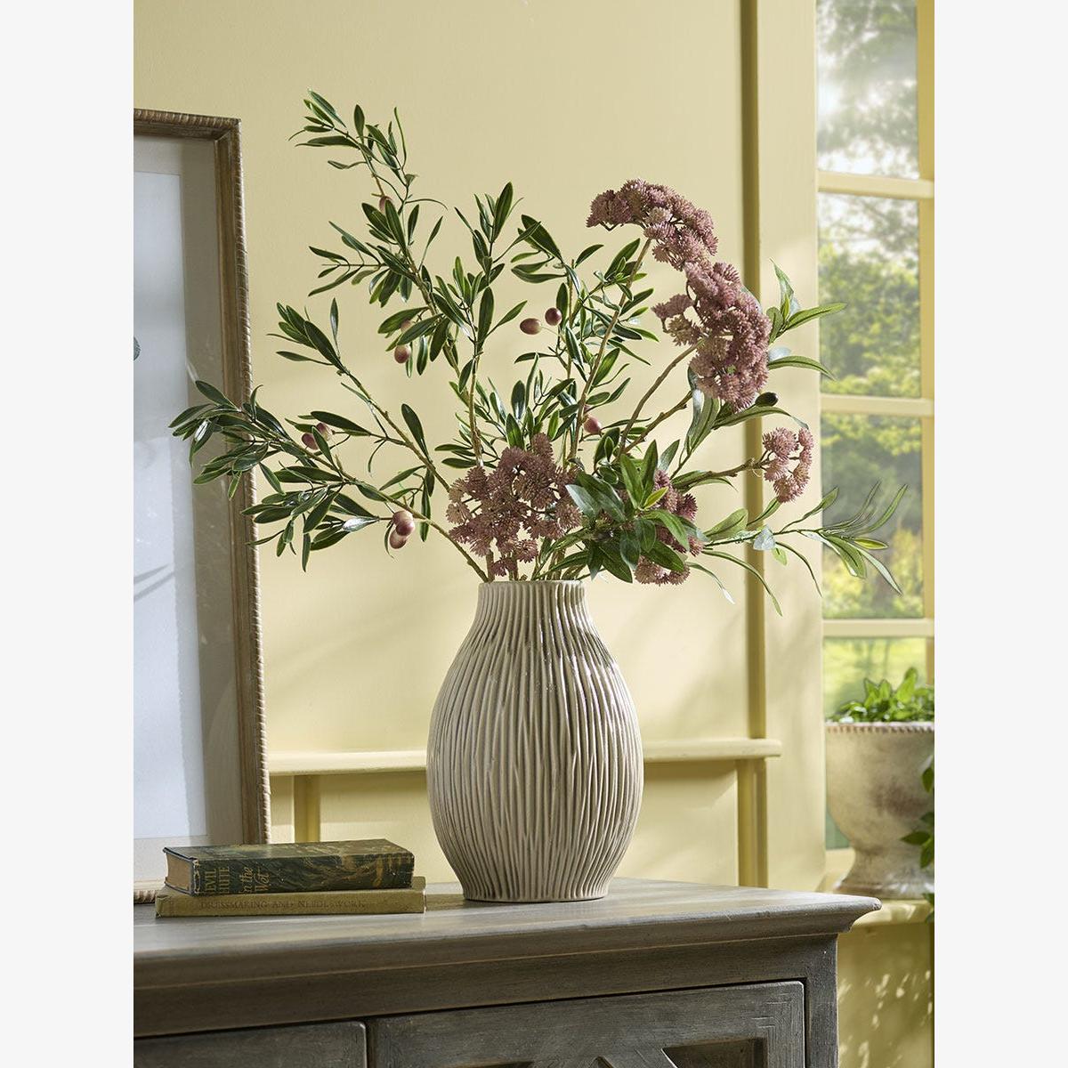 Perfect for introducing texture into your home, our Anna vase has an organic sculptural quality to it. With a simple silhouette, the neutral tones are enhanced by an abstract carved line detailing, creating a striped effect from afar and displaying texture and visual interest the closer you get. Perfect for a variety of interiors, this vase has individuality and rustic charm, a wonderful addition to our English Rustic collection.