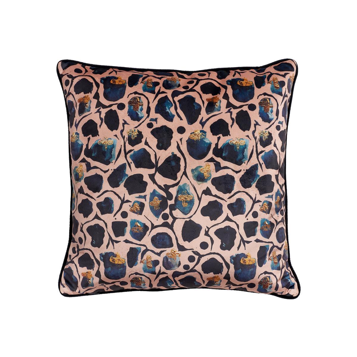 Bring a touch of the wild to any space with this Giraffe cushion from Anna Hayman. A thick velvet cushion featuring a hand-painted animal print inspired design in smoky grey and ink, it’s been finished with touches of gold. Luxuriously soft, it’s been finished with black piping and includes a feather and down insert.
