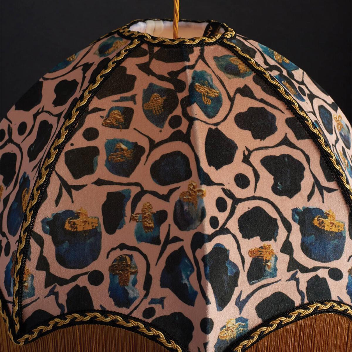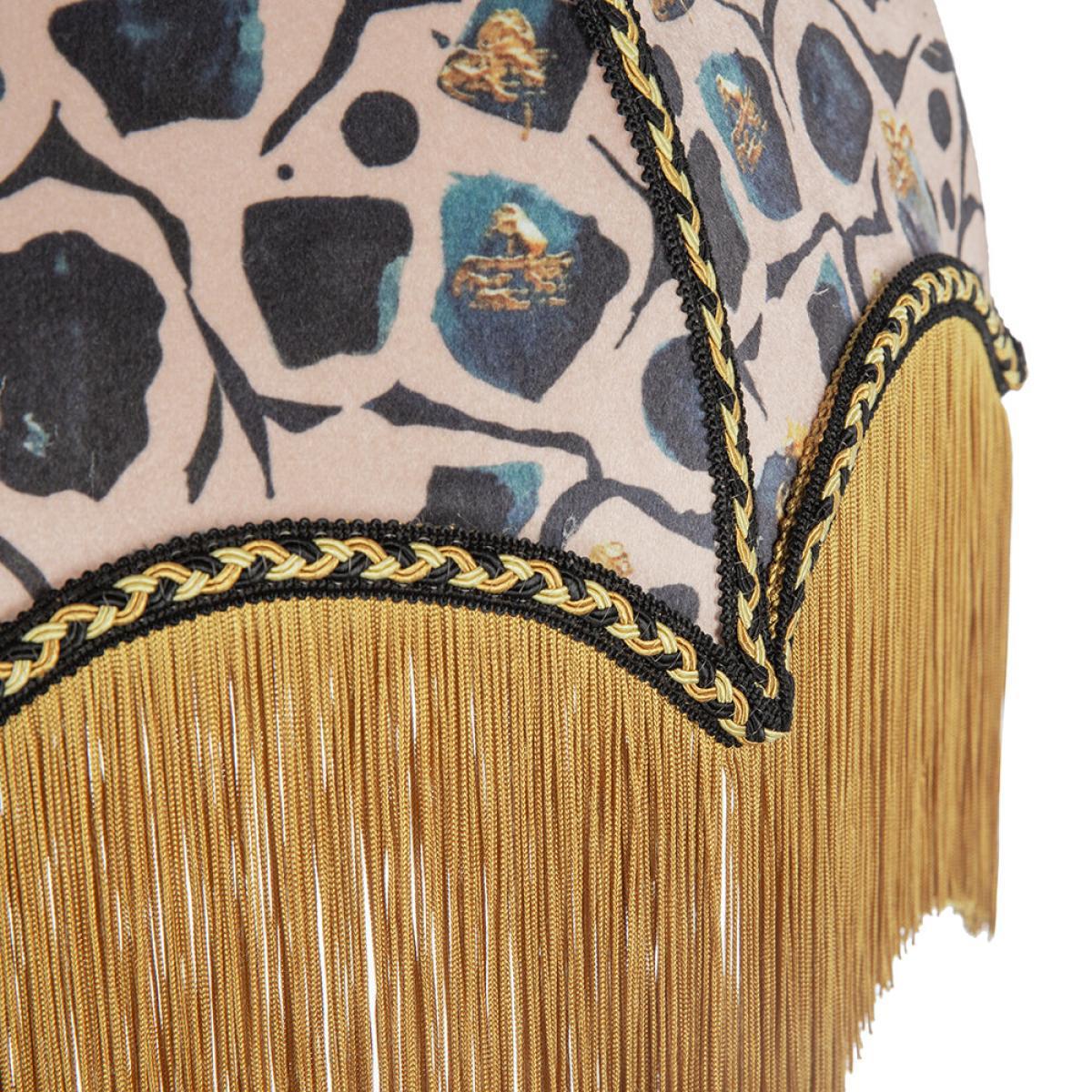 Bring a touch of the wild to any corner of your home with this Giraffe lamp shade from Anna Hayman. Hand-painted in blush pink and ink tones with golden accents, this lamp shade features an animal print inspired pattern and a fabulously fringed edging. It also arrives with an attachment so you can use on a ceiling light or with a table or floor lamp.
