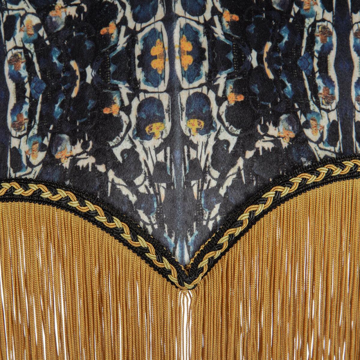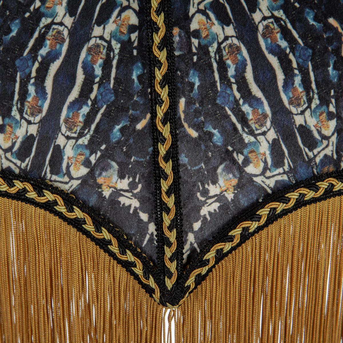 This lampshade is a real statement piece, combining eclectic patterns and textures for a striking visual impact. I love how it pairs a bold, intricate design with a touch of whimsical fringe, making it perfect for adding personality to both boho and vintage-inspired interiors. It works particularly well in eclectic and maximalist schemes, but can also bring a touch of unconventional elegance to more muted, neutral settings. For styling, consider placing it on a simple lamp base to let the shade stand out, and it’s ideal for side tables or bedside lamps to create an inviting, cosy glow with a bit of flair. Just remember to balance its boldness with more subdued accessories to avoid overwhelming the space.