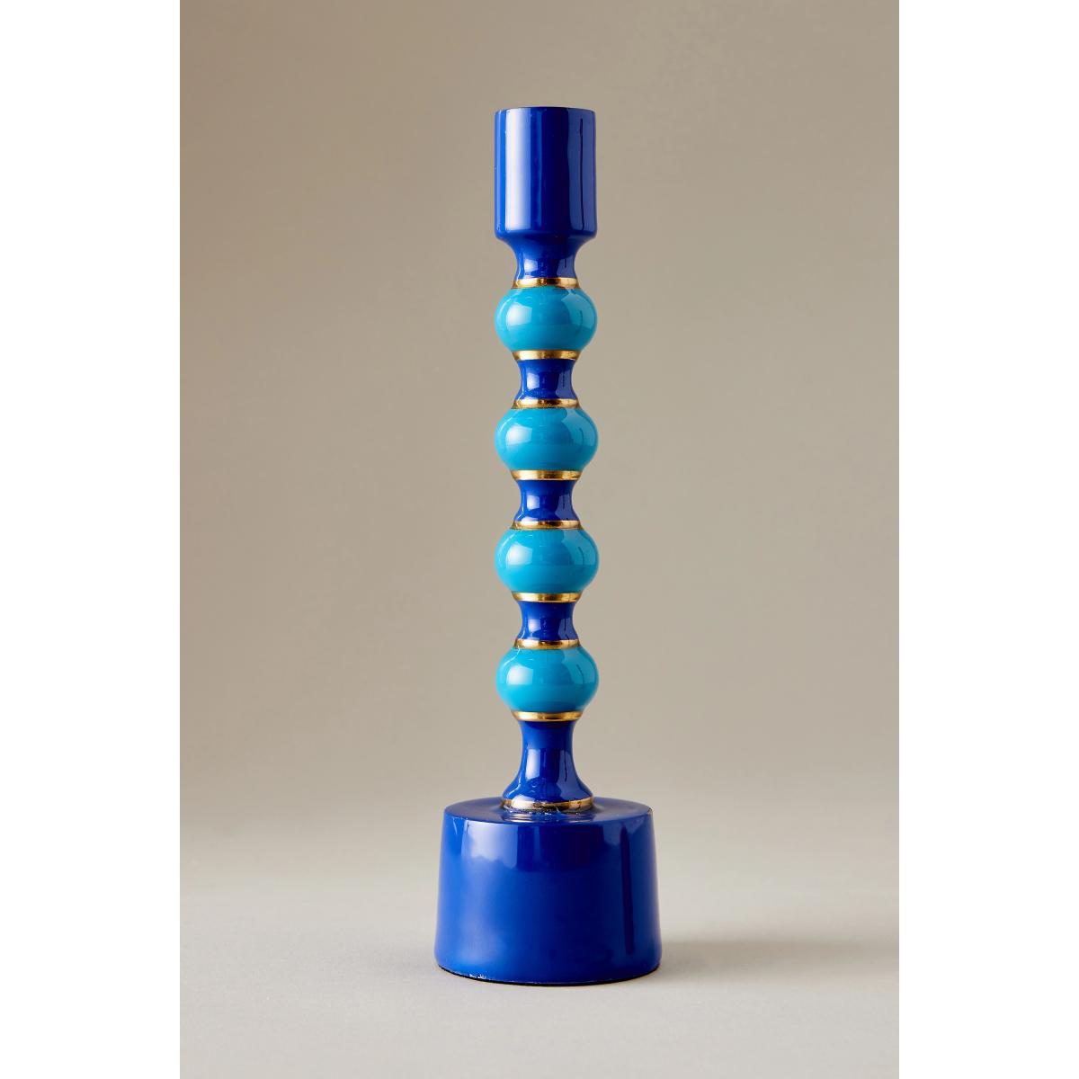 By Anna + Nina Aluminium Imported Medium Candle Holder by Anna + Nina in Blue at Anthropologie