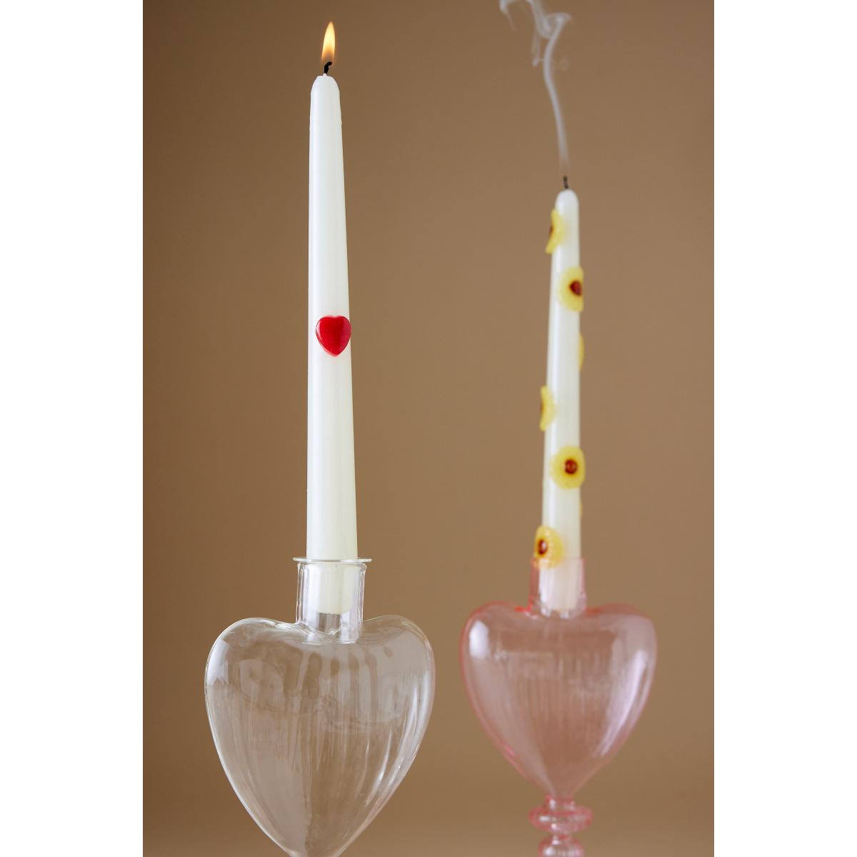 Crafted from mouthblown borosilicate glass, this elegant candle holder is evocative of vintage perfume bottles, with a sweet heart-shaped body. * By Anna + Nina * Borosilicate Glass * Mouthblown * Imported