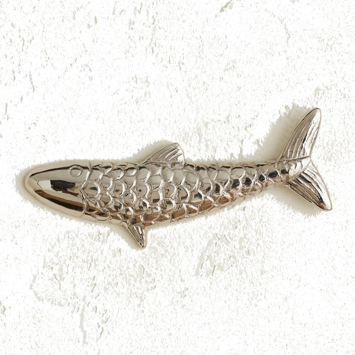 Add some *fishy flair* to your wall space with Anna + Nina's shiny sardine decoration. * By Anna + Nina * Nickelplated brass * Handmade * Imported