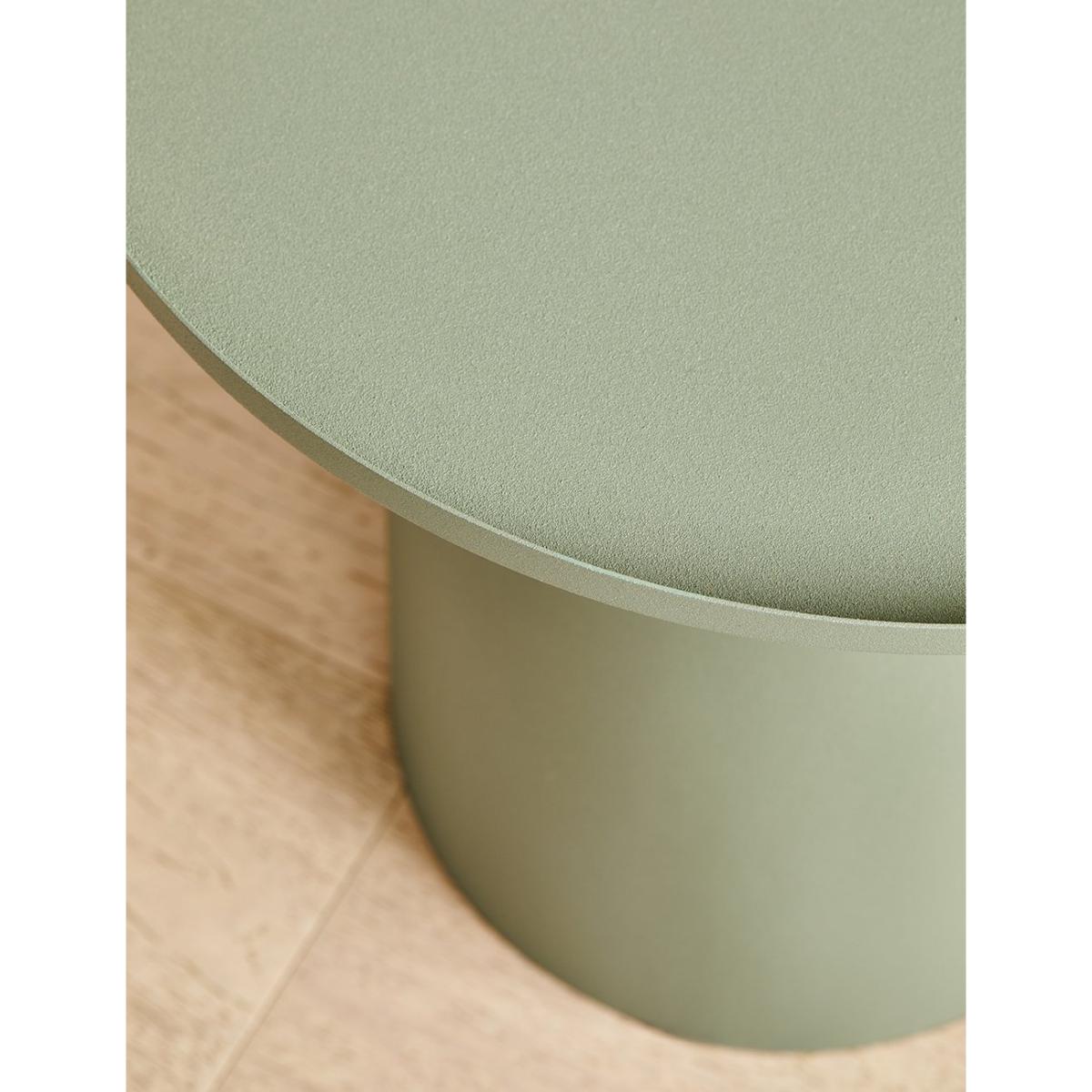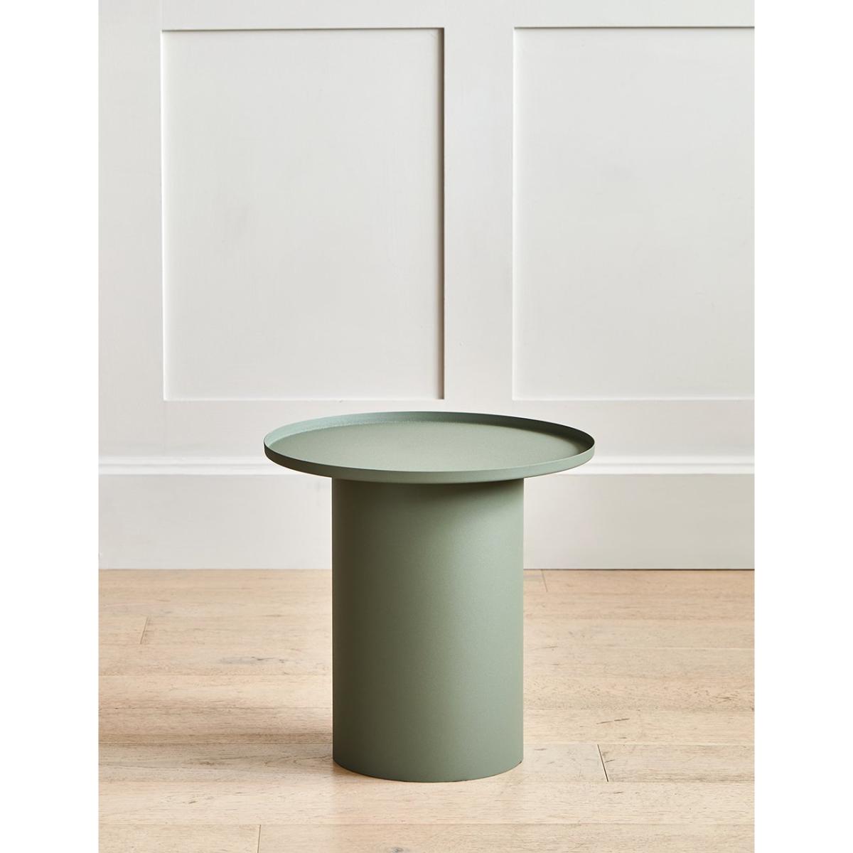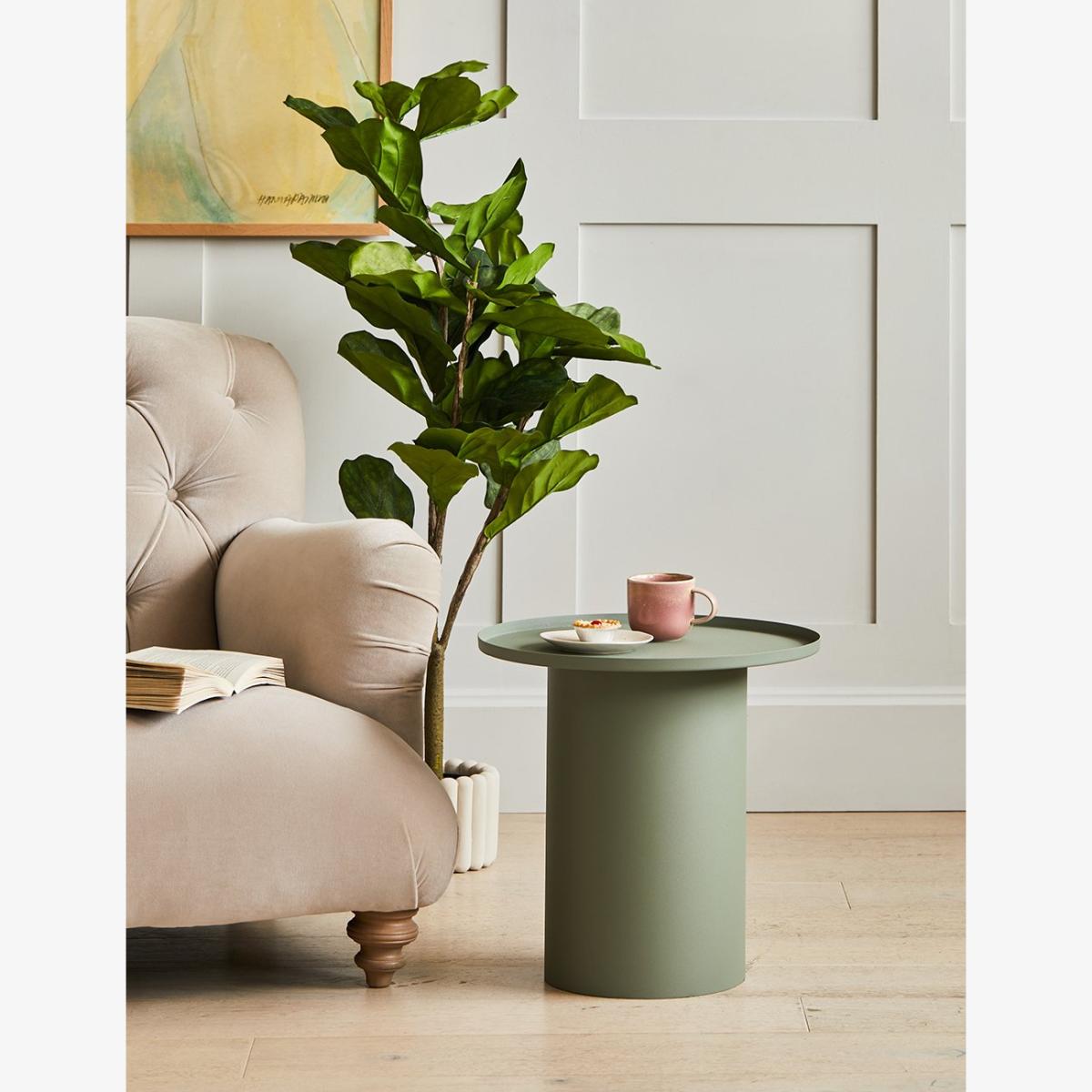 Incorporate bold shapes into your home with the Anna Sage Green Round Side Table. With a subtle hint of colour and a cylinder-shaped silhouette, this low-side table is perfect for a contemporary home. The powder coat finish gives the table a matte effect that looks beautiful in a sage green tone. This modern side table is also available in shades Navy Blue, Ivory and Dusky Pink.