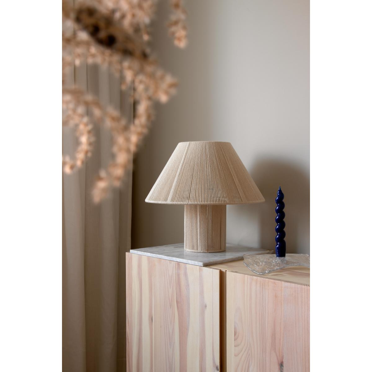 Anna table lamp 35 cm from Globen Lighting is a lovely lamp handmade from thick cotton thread and designed by Mikael Holvik. The lamp's wire has been wound by hand, which creates a beautiful craftsmanship and uniform design and which lets the light filter through between the wires. The lamp is a tribute to the designer's grandmother Anna who was a diligent seamstress and who worked on various projects during the evenings - one of those projects was the basis for the lamp's design.