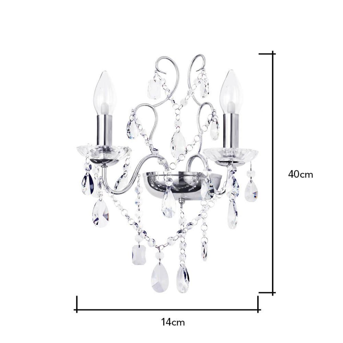 Get the perfect accent lighting with the Annalee Wall Light. This wall sconce is the perfect addition to go on either side of a bathroom mirror or cupboard for a balanced and symmetrical appearance. It also comes in a sleek chrome finish with a beautiful curved structure, decorated in crystal effect droplets that shimmer as they catch the light.