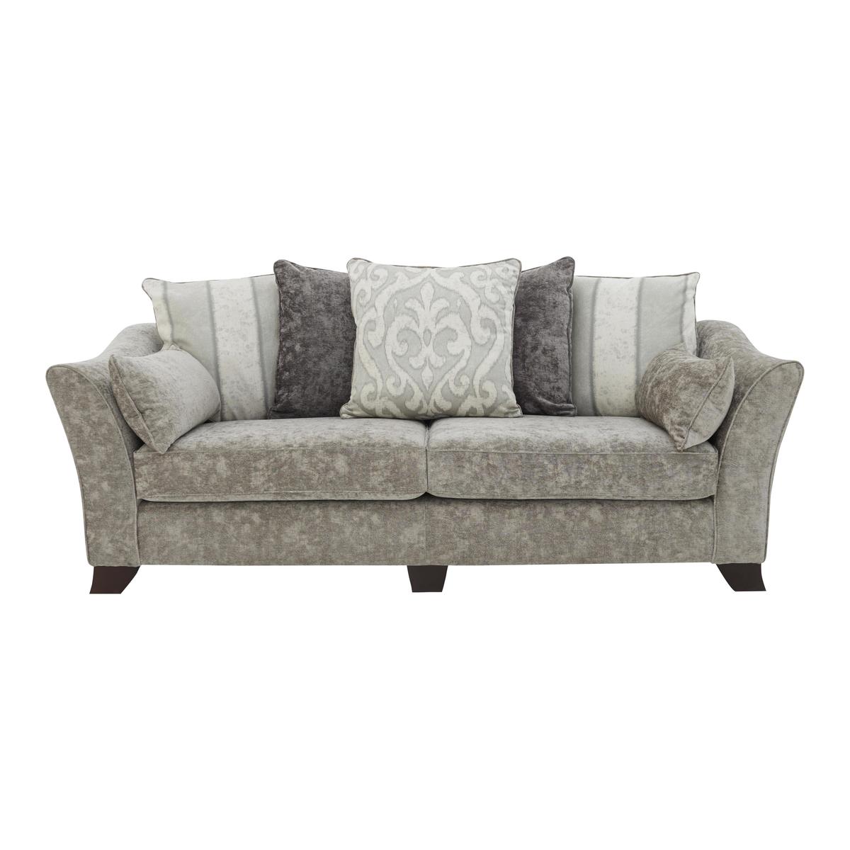 Includes 2 Bolsters. The Annalise four seater scatter back sofa seats four with ease. This comfortable, relaxed sofa has a casual, pillow back design and gently slanted arms – perfect for the contemporary home. This is a seriously comfortable large sofa. In addition to the five luxury fibre filled pillow back cushions you’ll feel truly pampered by the Supalux foam filled seat cushions on sprung seats and the soft woven fabric upholstery. This lovely large sofa comes with light or dark wooden feet, and there’s a choice of colours and patterns for the reversible pillow back cushions. Not to mention the feather filled scatter cushions, available to buy separately. For more fabric and colour choices, please call 0800 804 8879. The Annalise four seater pillow back sofa is made in the UK, part of the stylish, great value Annalise collection. Did you know, Some fabrics can show wear on areas of more use or in direct sunlight. To keep your fabric upholstery looking fresh, plump, turn and rotate seat and back cushions regularly if possible.