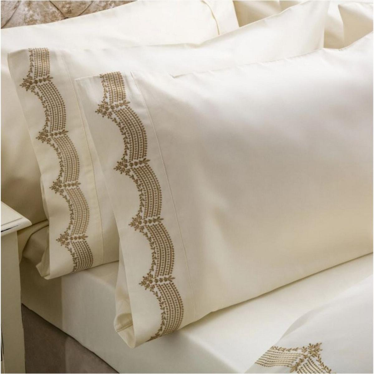 Material 100 Cotton. Thread Count 200. 2 Pillowcases. The intricate panel embroidery is timeless and elegant in every sense. 51 x 76cm.