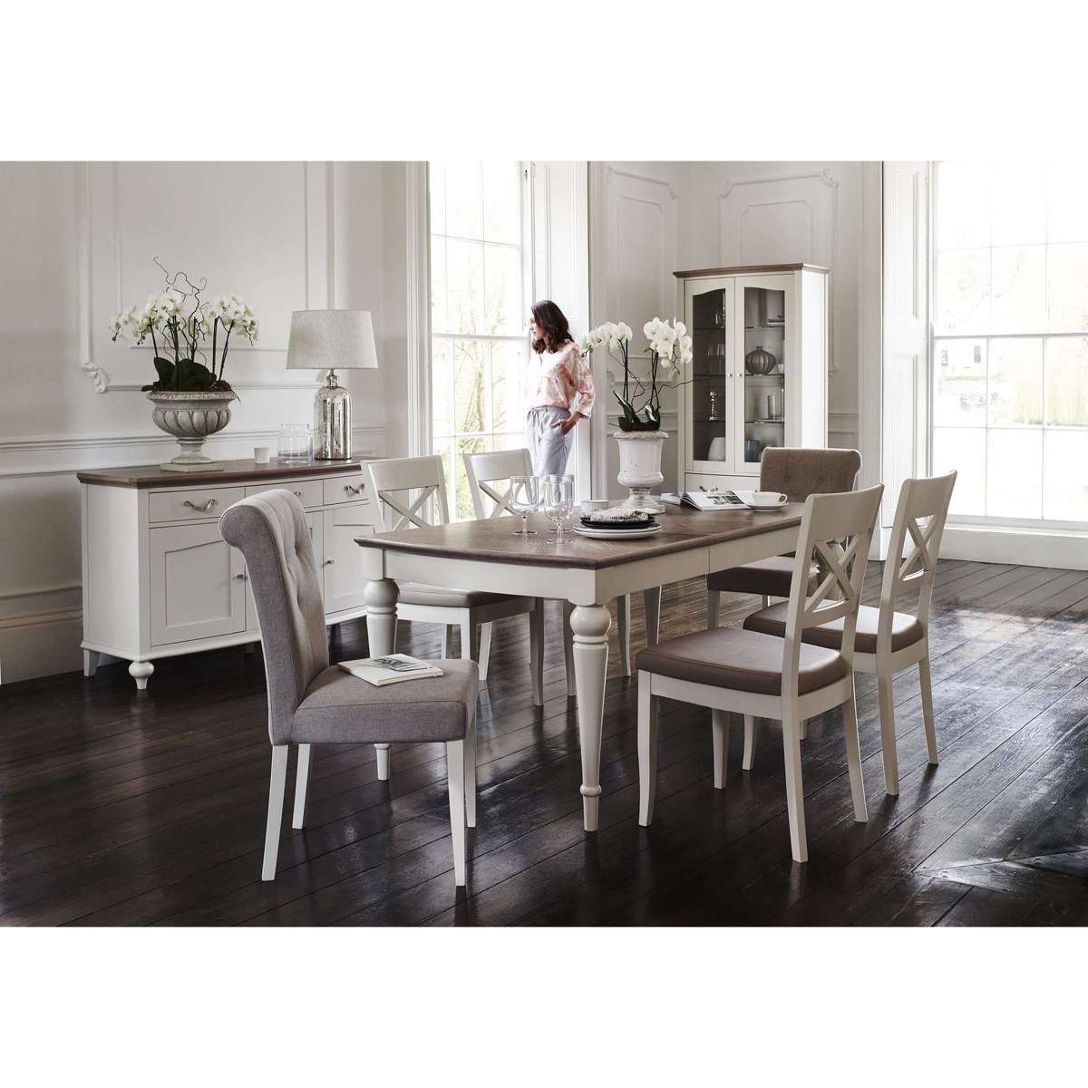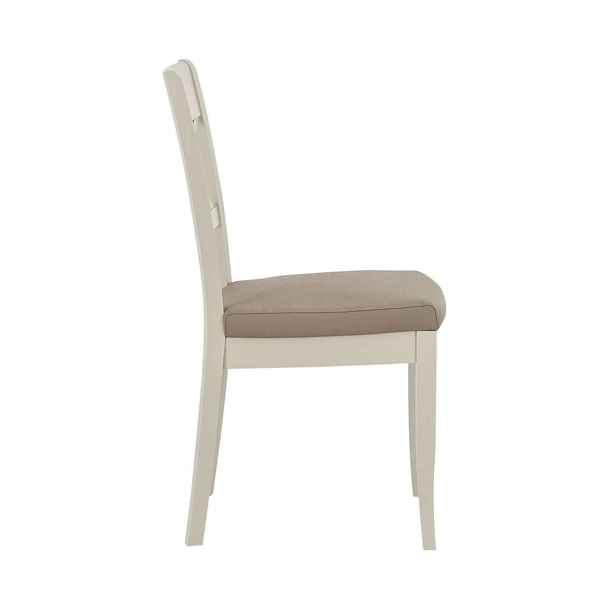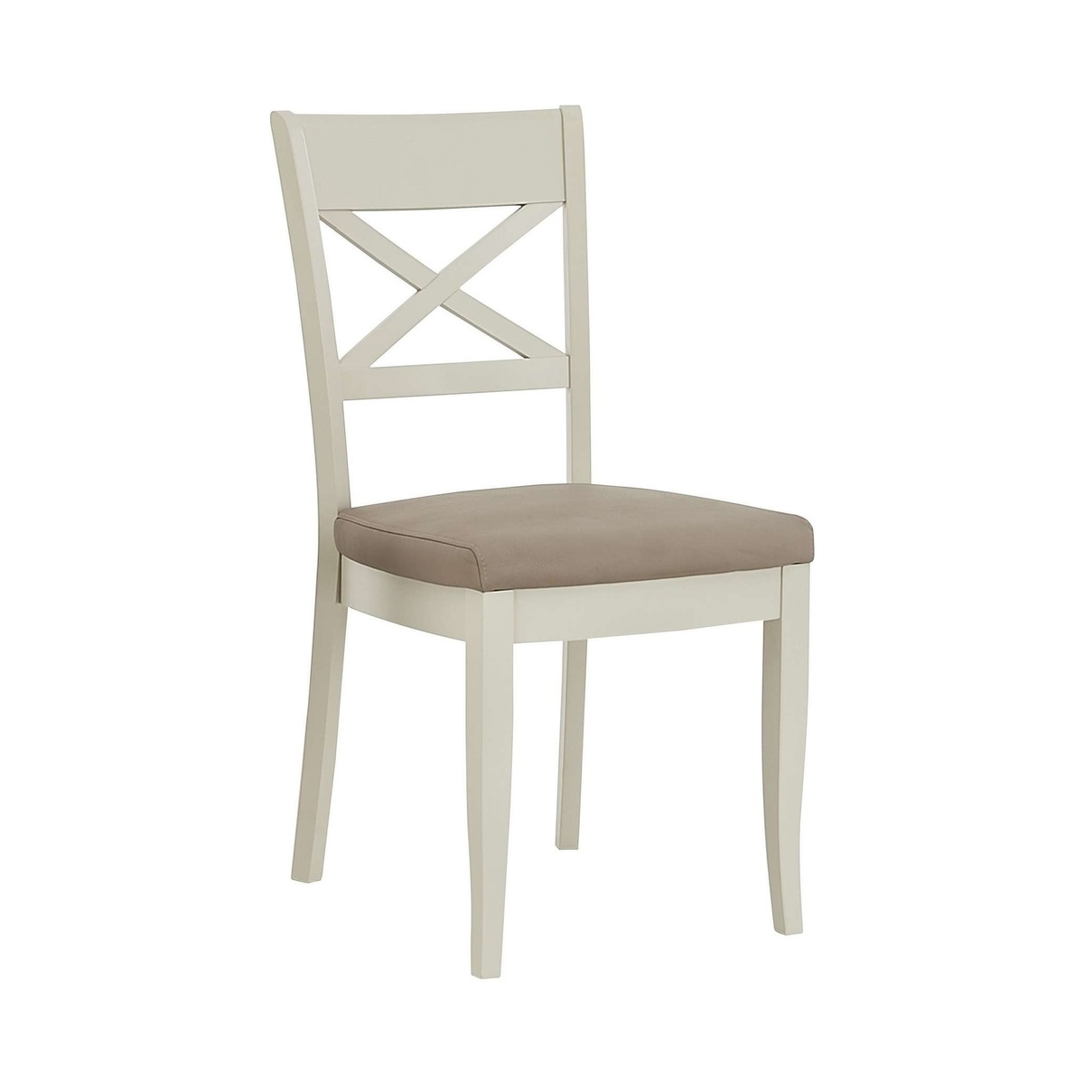Equally at home in a formal dining room and a relaxed kitchen diner, these lovely pair of Annecy cross back chairs always brings a touch of elegance. Why you'll love it Pair of faux leather cross back dining chair showcases timeless dining room style. Elegant design details include a broad top rail and tapered legs. Comfortable seat upholstered in easy- care grey faux leather. Light grey painted finish. Only at Furniture Village. These faux leather cross back dining chairs are part of the Annecy range. What you need to know Beech wood frame and legs. Foam seat cushioning.