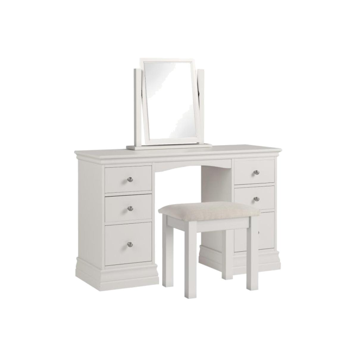 Long established as one of the UK's original painted ranges, and the very best of its kind, with its painted finish providing an authentic, luxurious look which highlights the crisp detailing of the cabinets. Hand painted in the Cotswolds, available in either Cotton or White offering an inspired choice sure to give your bedroom an elegantly sophisticated look. *Stool only supplied at this price. Dressing table and mirror sold seperately.