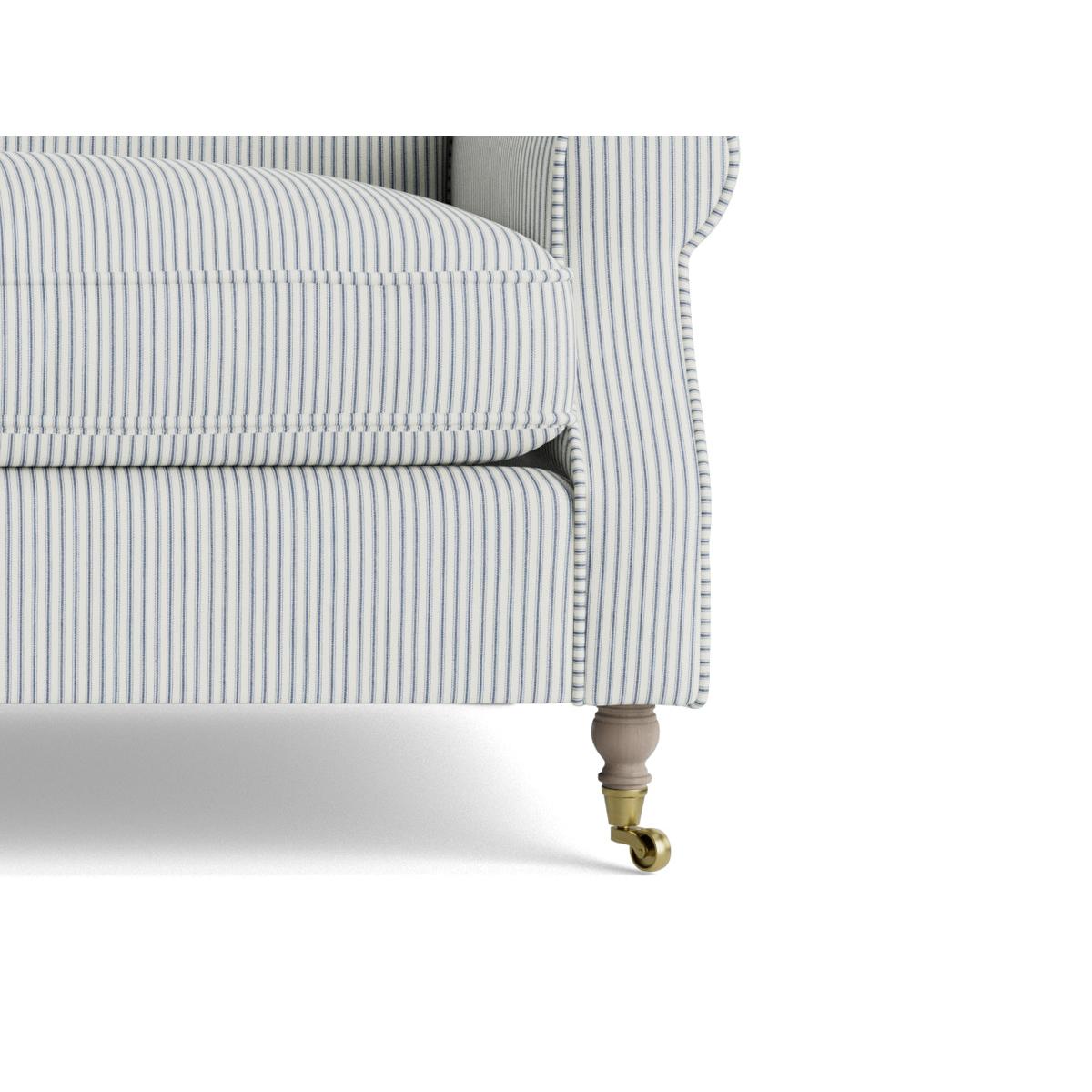 The star of our Annecy collection, the sofa is sophistication itself. A tailored back provides firm support while the base cushions have a foam and feather fill for a squishy inviting seat. P-shaped arms are neatly piped for a premium finish and turned wooden legs on castors provide an extra touch of elegance. The sofa is available as a two or three seater option and the Annecy range also includes an armchair and an ottoman. Pictured here in our blue and white stripe material, our Annecy collection can be upholstered in a choice of distinctive shades and fabrics to suit your style. Read our Upholstery FAQs View our full Upholstery Terms and Conditions