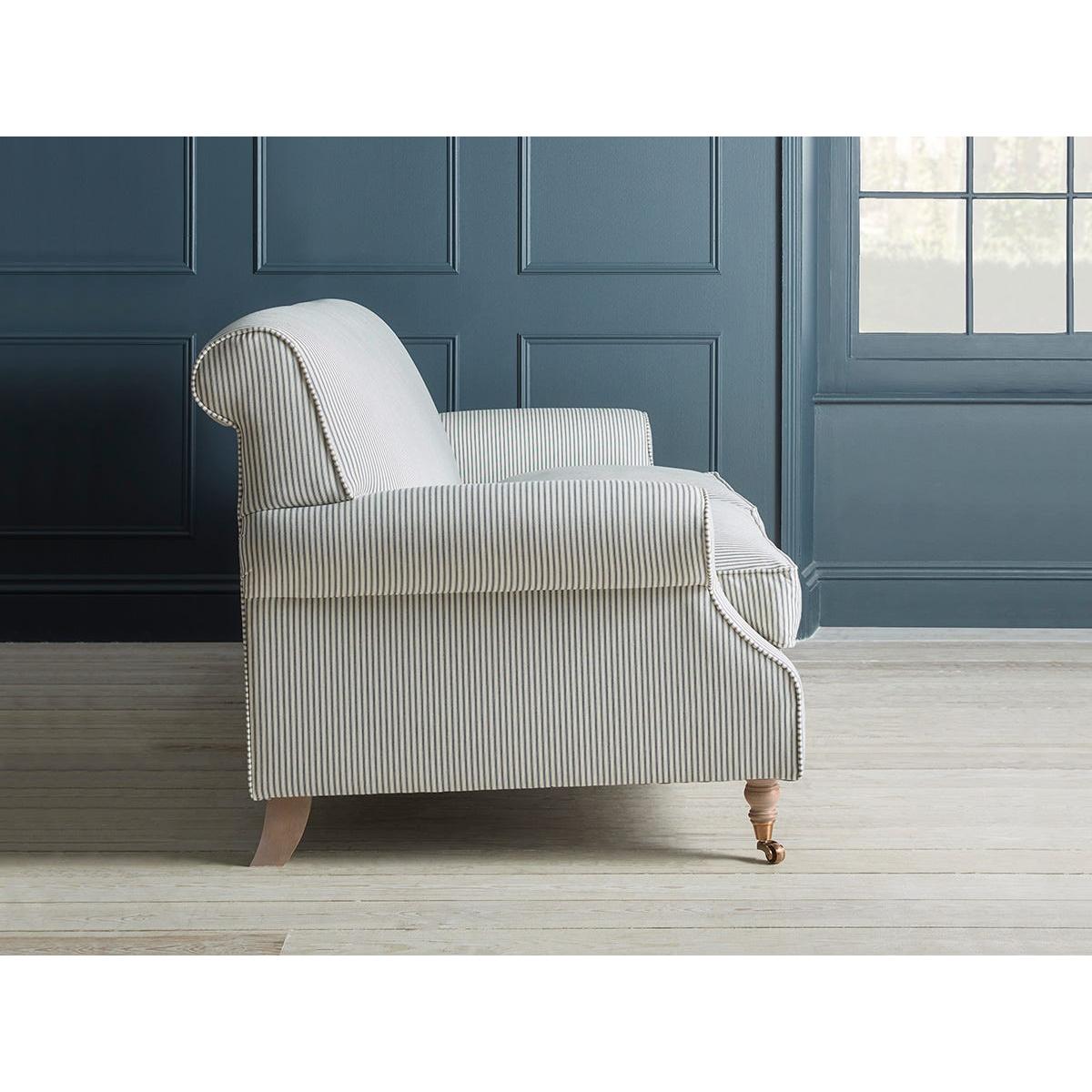 The star of our Annecy collection, the sofa is sophistication itself. A tailored back provides firm support while the base cushions have a foam and feather fill for a squishy inviting seat. P-shaped arms are neatly piped for a premium finish and turned wooden legs on castors provide an extra touch of elegance. The sofa is available as a two or three seater option and the Annecy range also includes an armchair and an ottoman. Pictured here in our blue and white stripe material, our Annecy collection can be upholstered in a choice of distinctive shades and fabrics to suit your style. Read our Upholstery FAQs View our full Upholstery Terms and Conditions