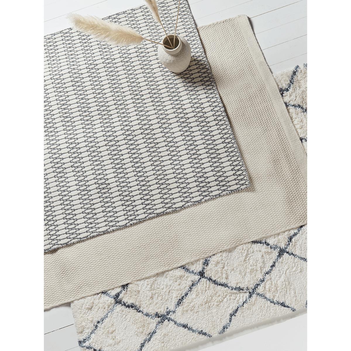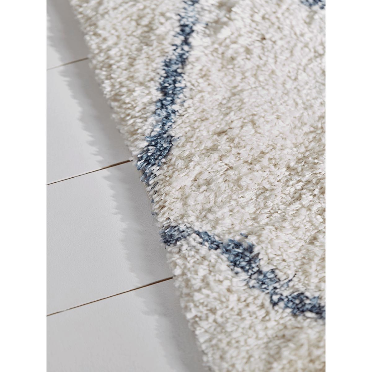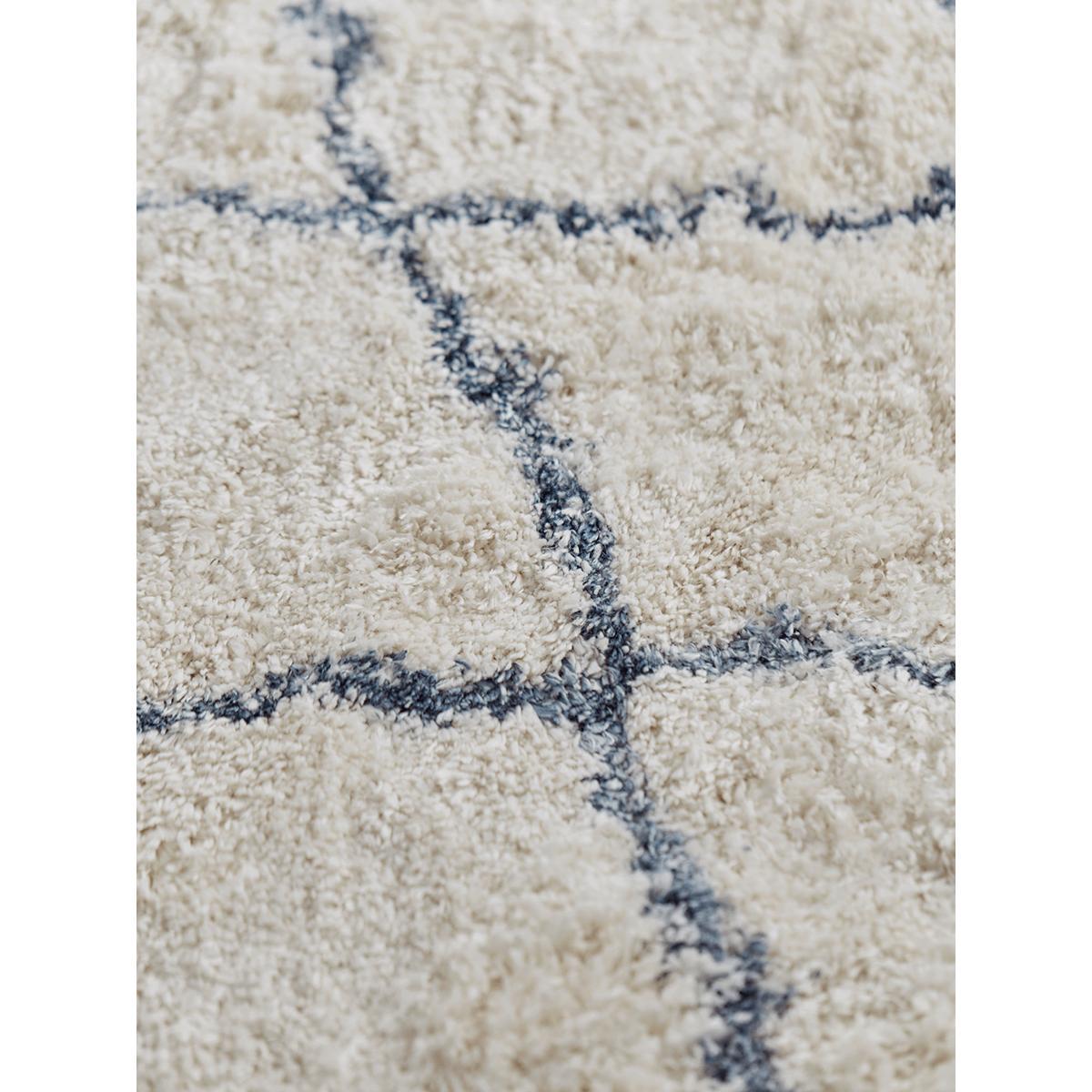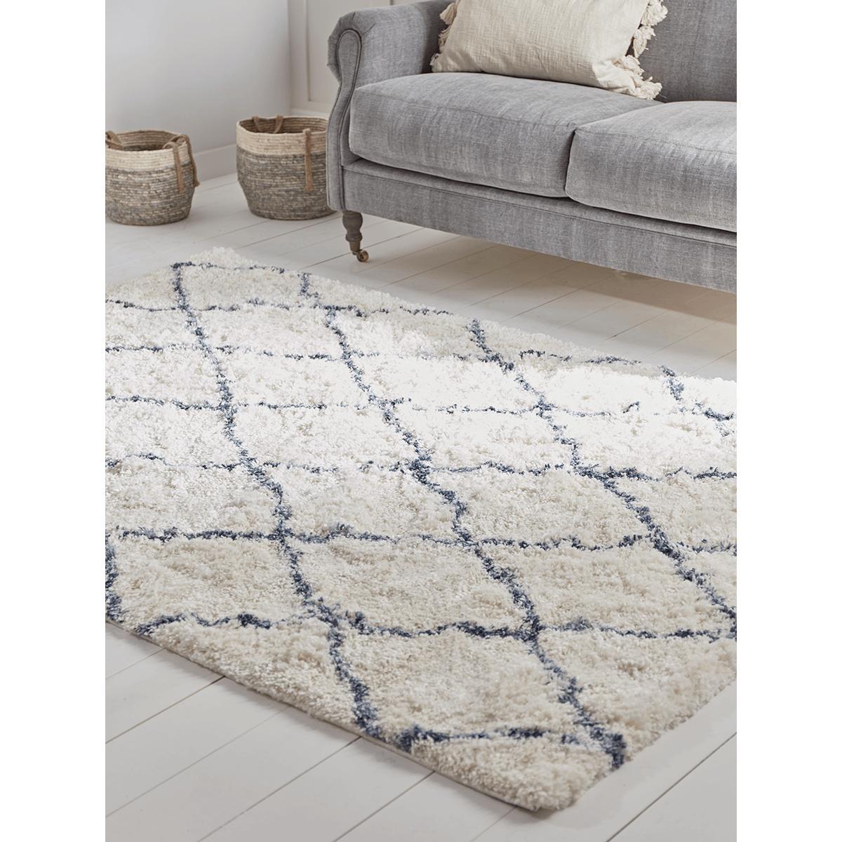 Hardwearing and cosy, our Berber style rug, with a soft cream ground and geometric blue pattern, has a luxurious feel underfoot - perfect for setting a welcoming look and feel in your living space or bedroom.