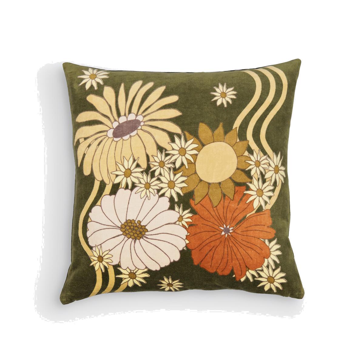 Ready for a change of scenery? Inspired by the seventies, the Annie cushion cover in cotton velvet combines floral patterns and waves. Created by La Redoute Interiors. Product Details • 100% cotton • Cotton velour • Front printed with flowers and waves • Plain on back • Zip fastening. Size • 45 x 45cm • OEKO-TEX® Standard 100. Standard 100 certification by OEKO-TEX® tests textile products for harmful substances via an independent, international label.