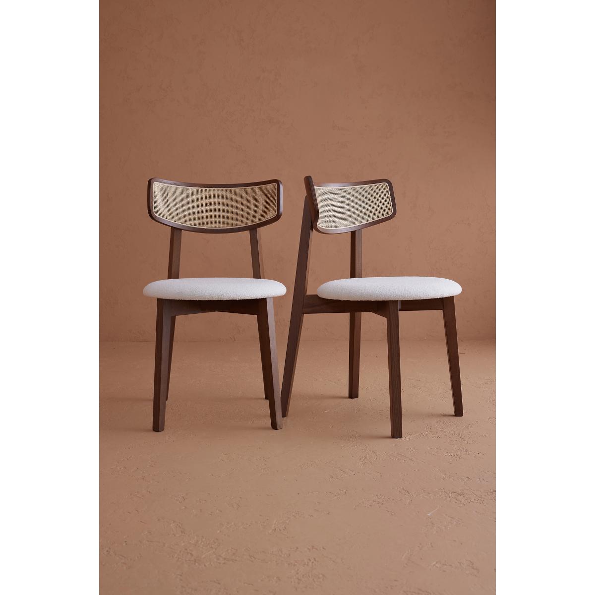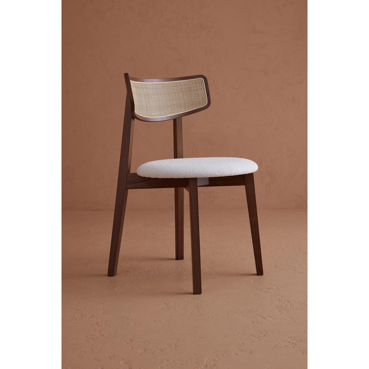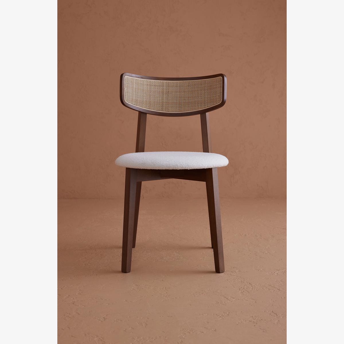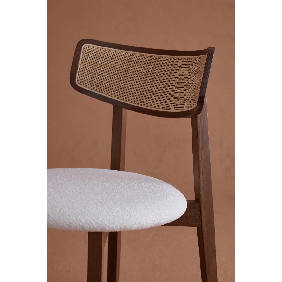 Expertly crafted in Italy using sustainably sourced FSC wood, this set of modern boucle upholstered and cane-detailed chairs introduce a touch of texture and warm hues to any dining room. * Set of two dining chairs * 100% FSC Beech Frame; 100% Polyester Boucle upholstery * Cane back * Hand-finished * Suitable for indoor use * Professional clean * Made in Italy
