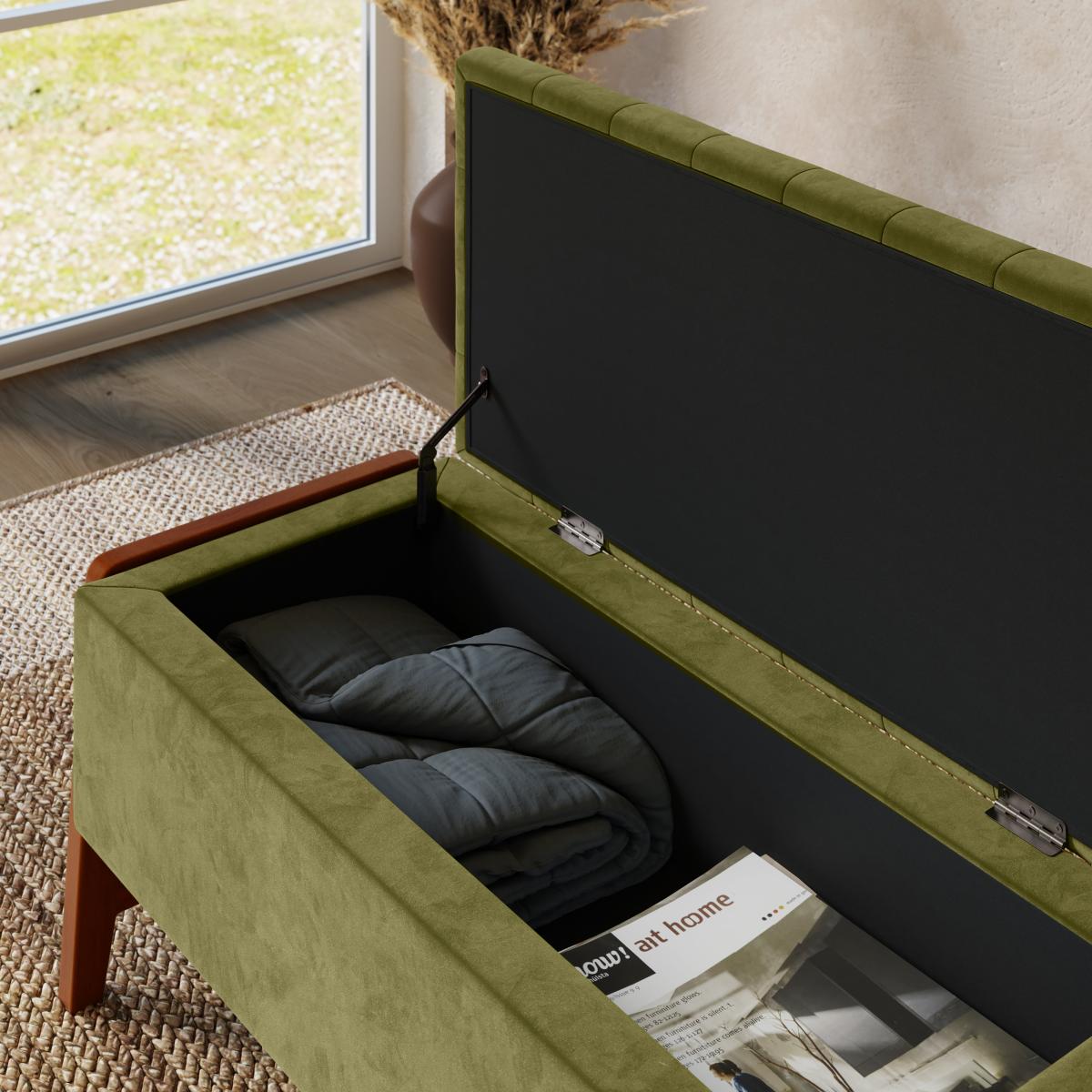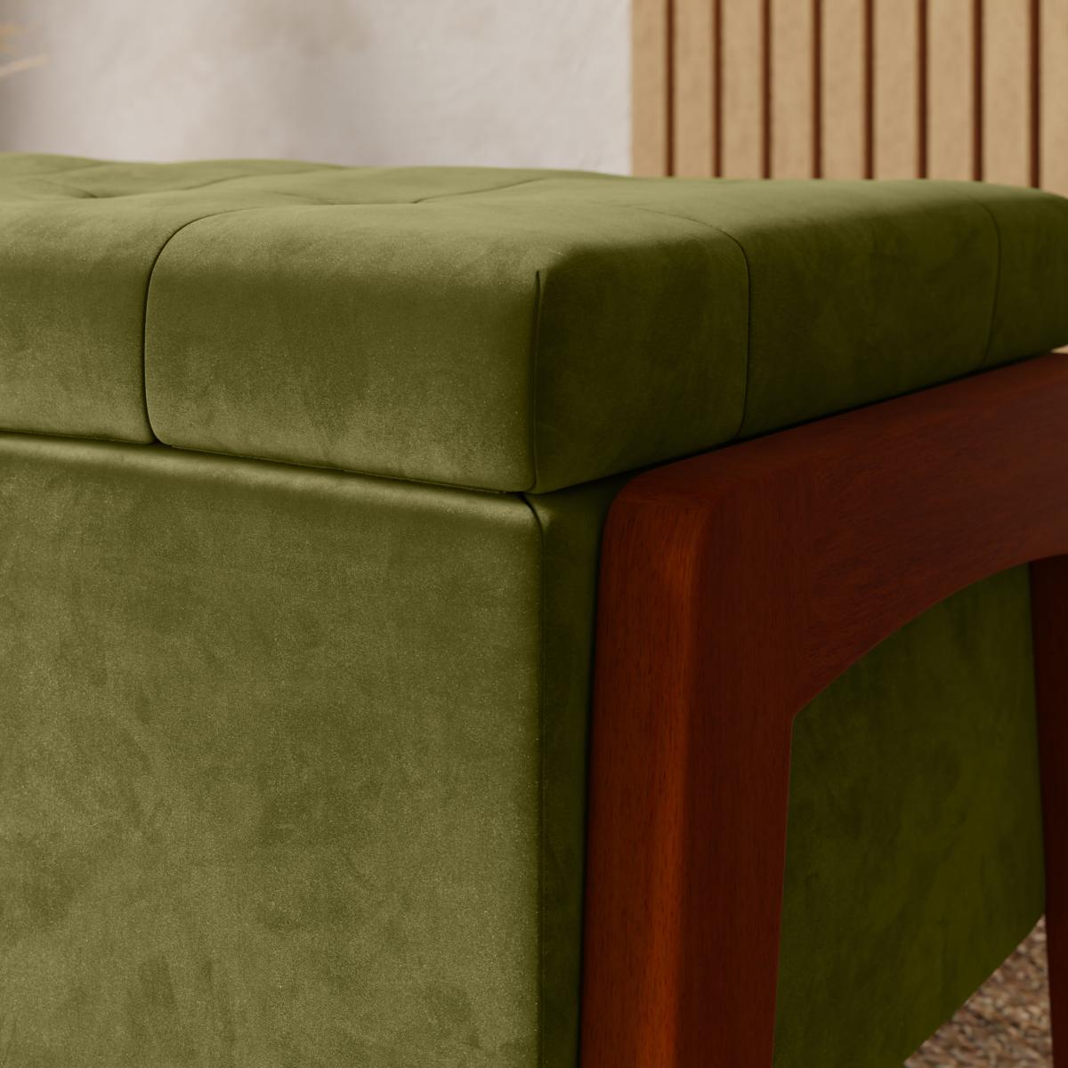 I love this ottoman because of its versatile olive velvet cover, which adds a subtle pop of colour and texture to a variety of interiors. It works particularly well in modern, Scandinavian, or even vintage-inspired spaces, serving as both a practical footrest and extra seating when needed. For styling tips, try pairing it with neutral armchairs or a soft woven rug to create a cosy, inviting corner. It’s also easy to dress up with a decorative tray or a few cushions on top to make it look more polished. Its compact size makes it ideal for smaller rooms or as an accent piece in a larger living area.