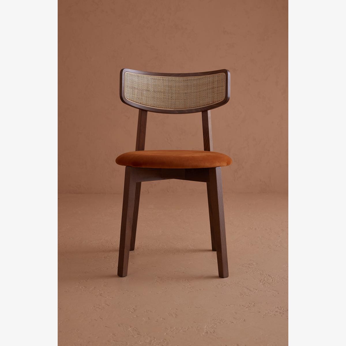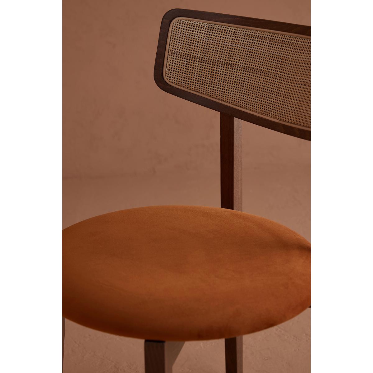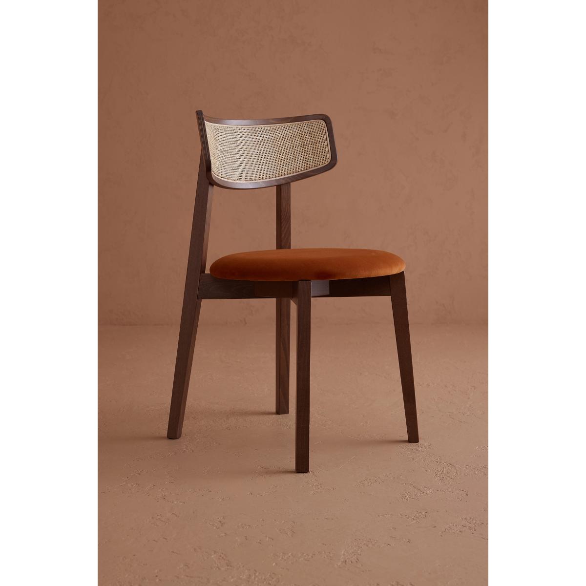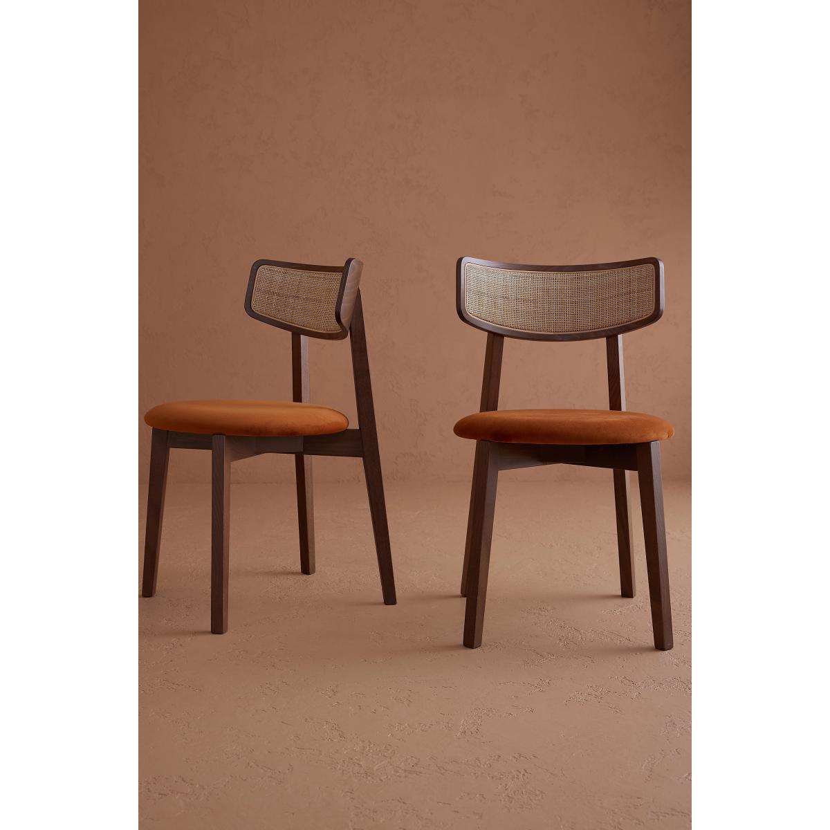 Expertly crafted in Italy using sustainably sourced FSC wood, this modern velvet-upholstered and cane-detailed dining chair pair lends a serene touch to any dining room. Annie Velvet-Upholstered FSC Wood Cane Dining Chairs, Set of 2 by Anthropologie in Orange, Women's