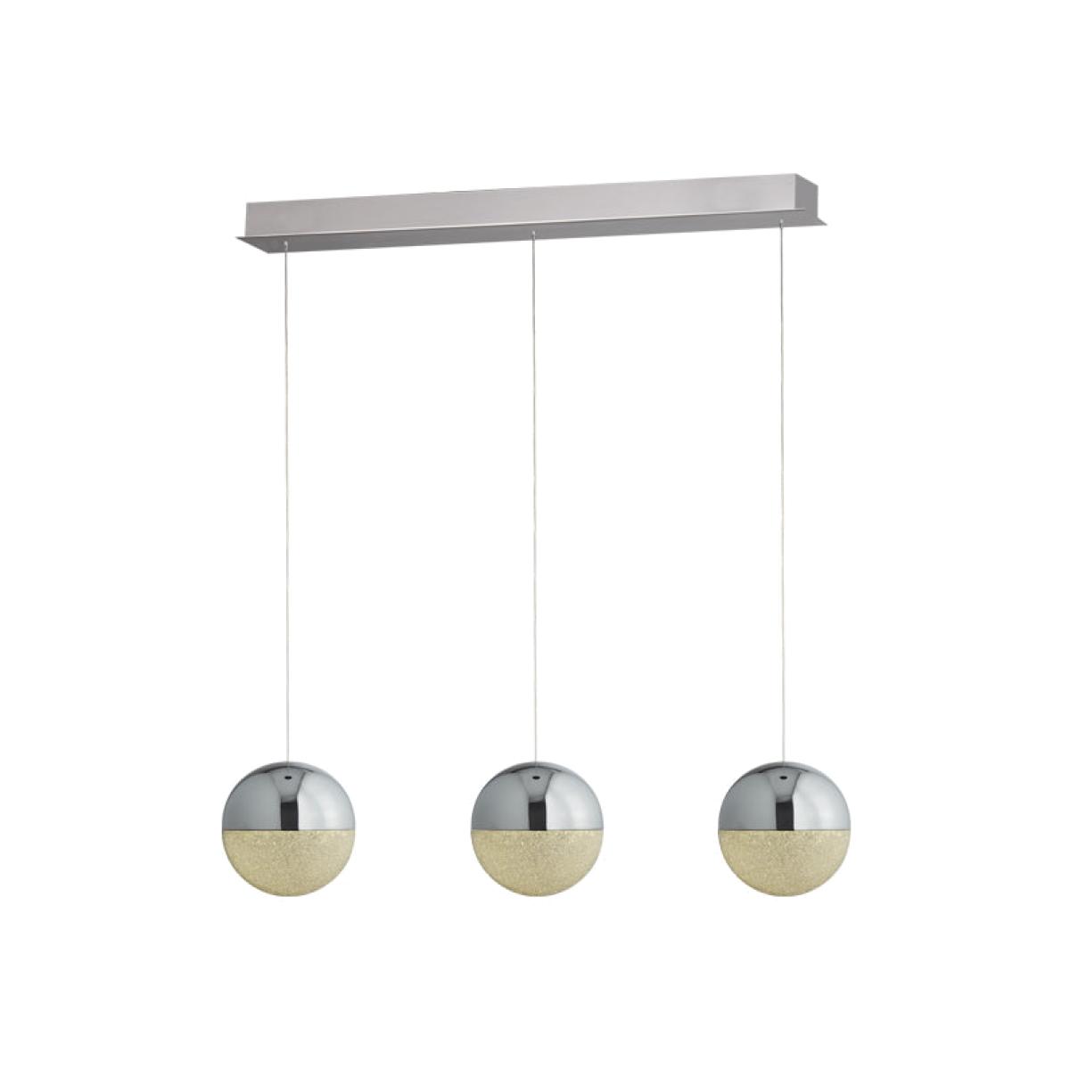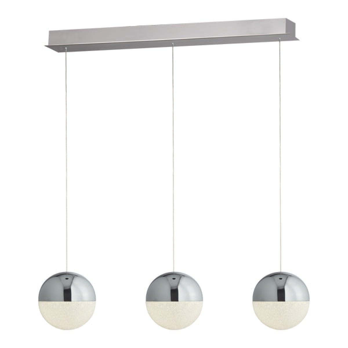 Add a contemporary touch to any home with this bar pendant. With 3 lights in chrome and crushed ice effect globes, this bar pendant is ideal to be hung low over dining tables or kitchen islands. This product uses integrated LEDs as a light source, which is more energy efficient and will help reduce your household carbon footprint and energy costs. Add a contemporary touch to any home with this bar pendant. With 3 lights in chrome and crushed ice effect globes, this bar pendant is ideal to be hung low over dining tables or kitchen islands. This product uses integrated LEDs as a light source, which is more energy efficient and will help reduce your household carbon footprint and energy costs.