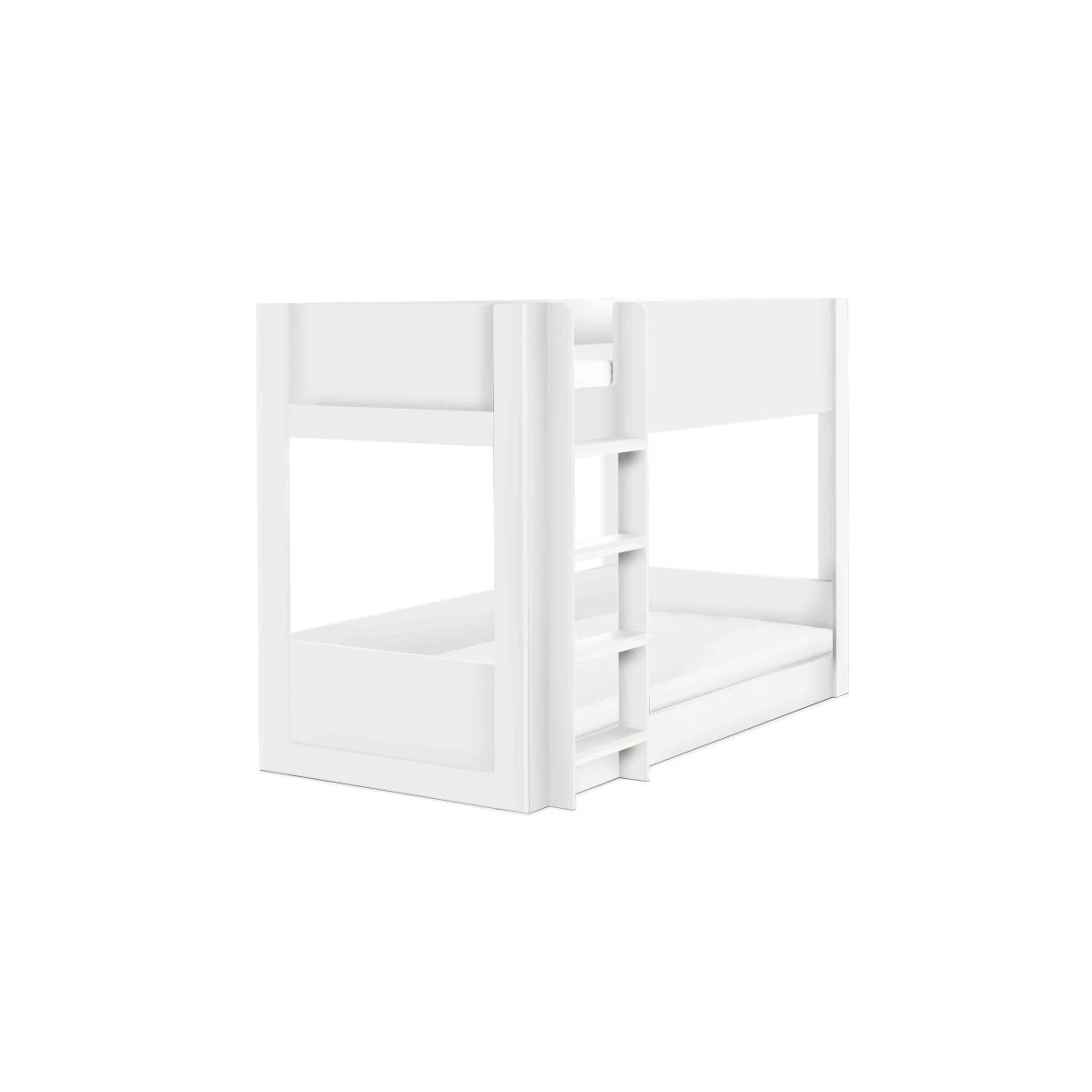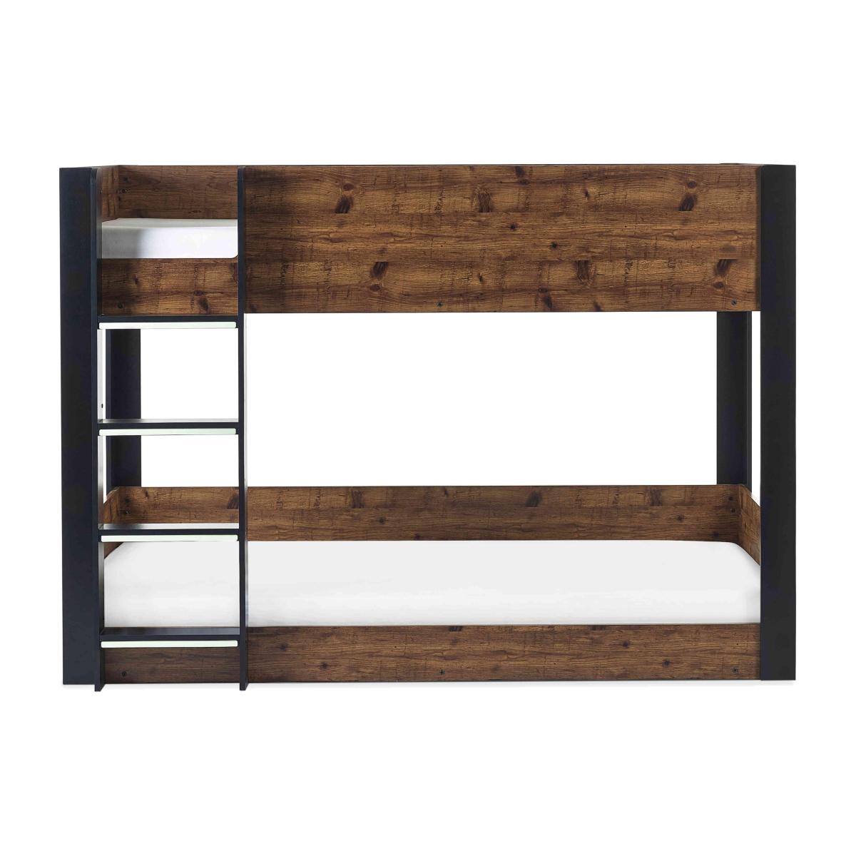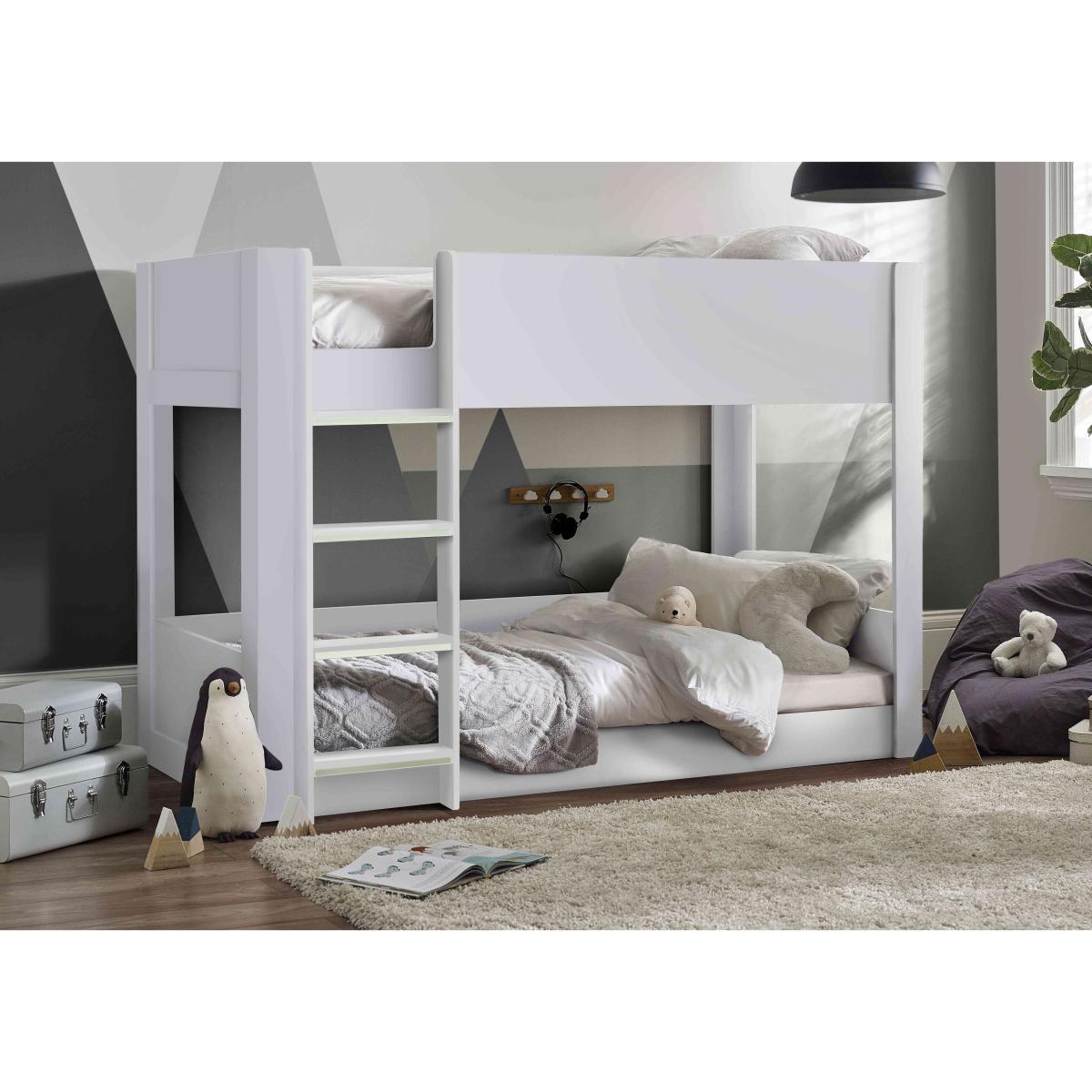 Contemporary and well-crafted, this modern bunk bed is built for safety as well as style with a glow-in-the-dark ladder and more. In a choice of two finishes. Why you'll love it This contemporary and well-crafted bunk bed is a stylish space saver. Choose bright all-white or urban wood-effect and black finish. Integrated glow-in-the-dark ladder for easier night time navigation. Sturdy boarded headboard and footboard for extra peace of mind. This bunk bed is part of our children’s bedroom furniture collection. What you need to know Mattresses not included. Delivered to you flat-packed. Assembly required. Suitable for children aged 6 and over. Requires 2 standard UK single mattresses (90 cm x 190 cm). For safety reasons, mattresses should be no more than 18 cm deep. Takes 2 people approximately 120 minutes to assemble. A clearance of 10 cm at either end of this bed is required for assembly. WARNING!